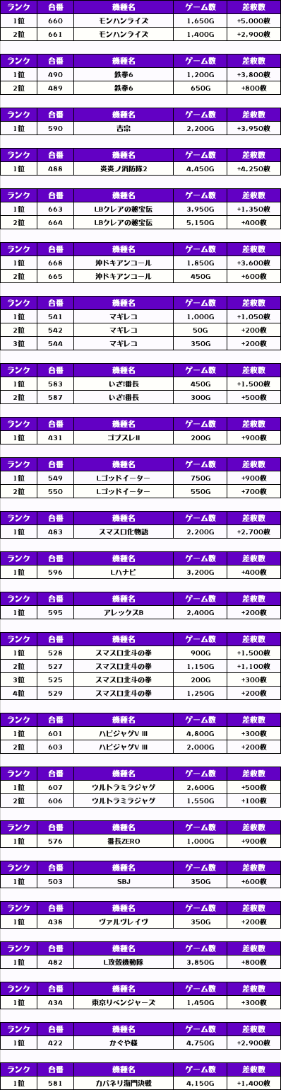 それでは早速【機種別差枚ランキング】をチェックしていきましょう🙆♀️