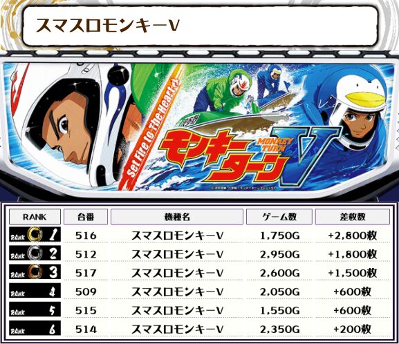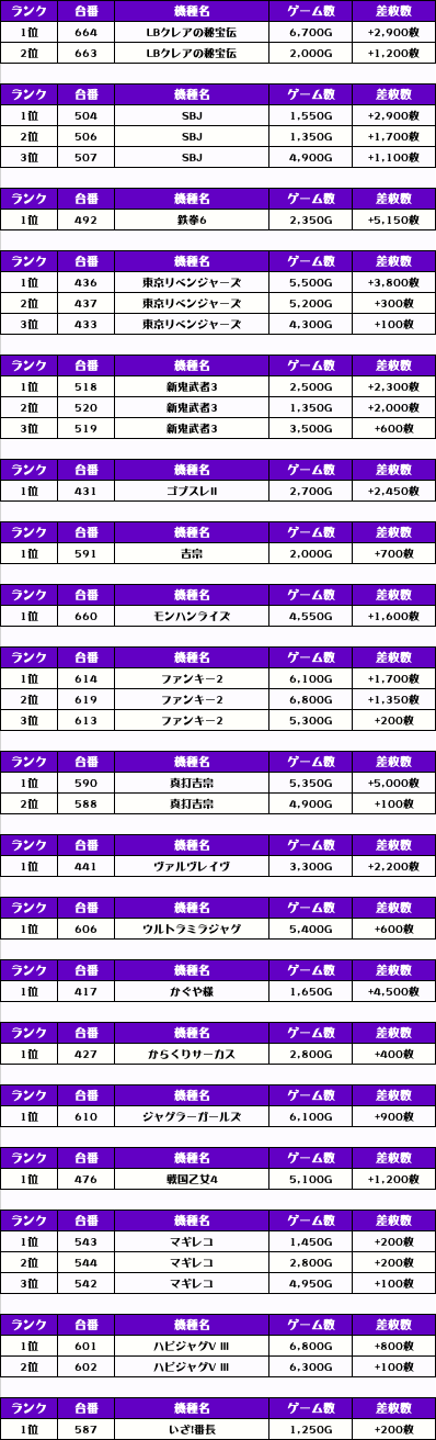 それでは、この日の【機種別差枚ランキング】を見ていきましょう❗️