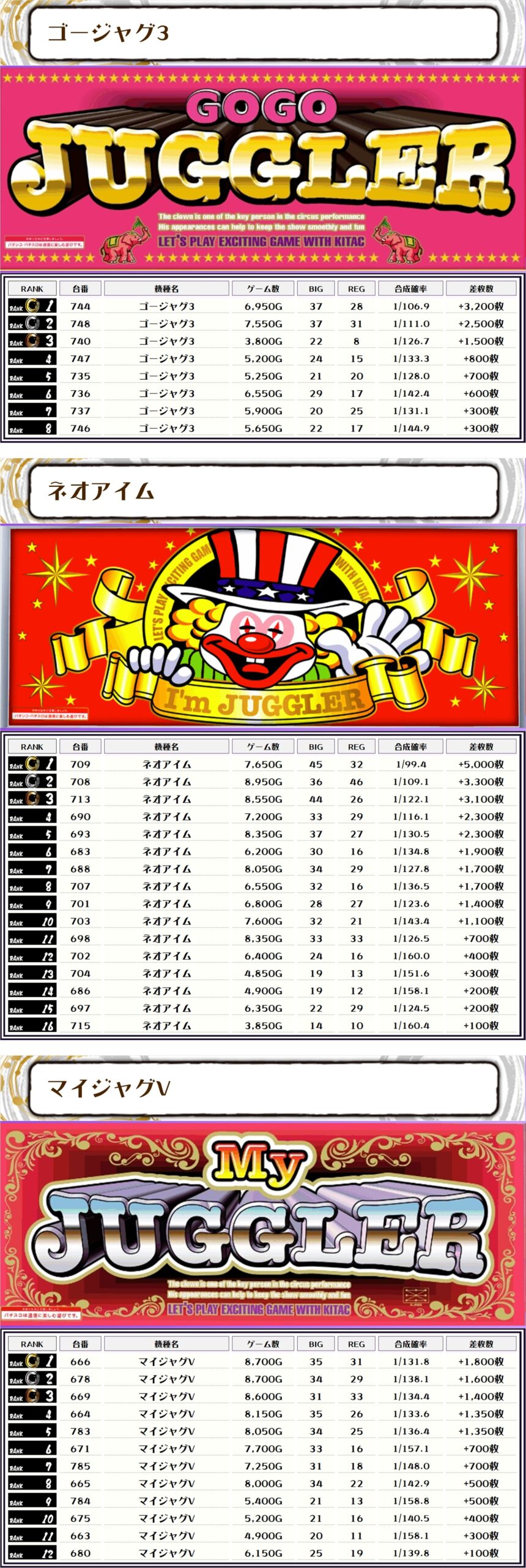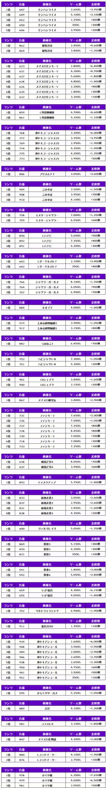 また、この日の注目台差枚ランキングがこちら❗️