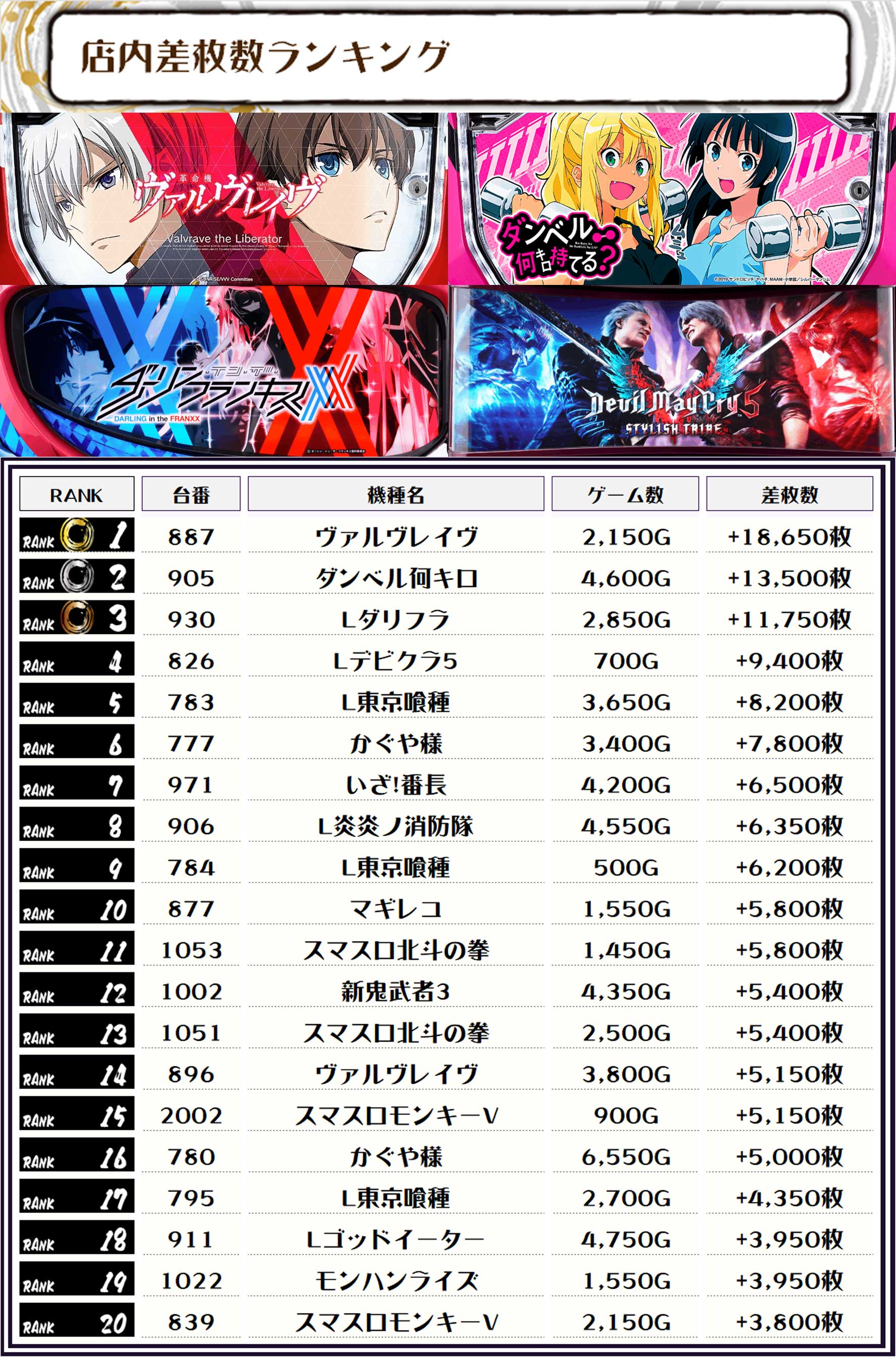 それでは早速【機種別差枚ランキング】をチェックしていきましょう🙆♀️