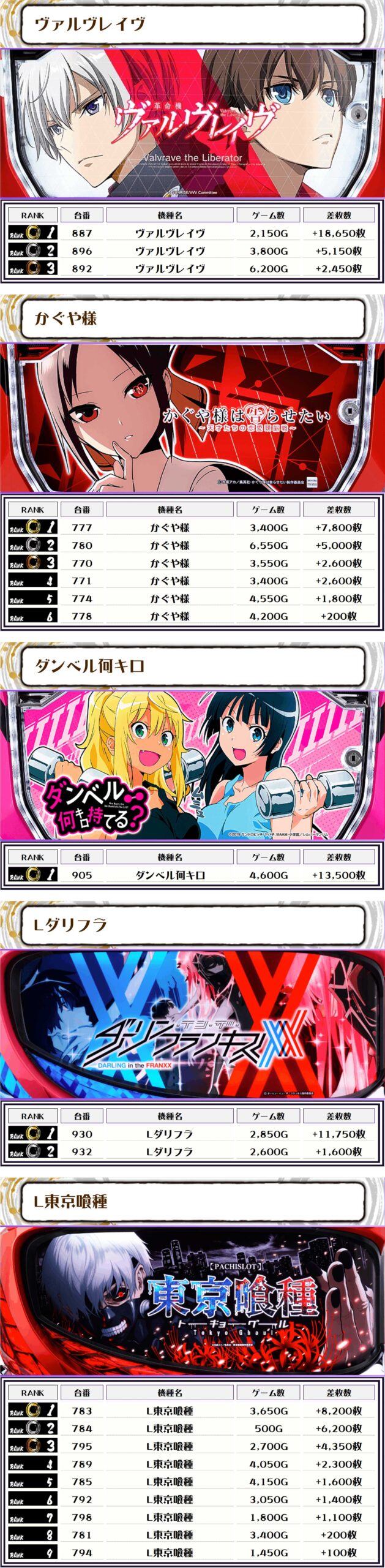 ピックアップしたのは優秀台が多かったと思われる機種になります📝