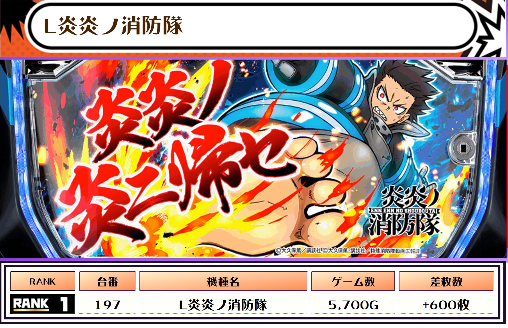 挙動を見ると、かぐや様、吉宗、スタァライト、わた婚、スマスロバジ絆2、L炎炎ノ消防隊は全台だった感じがしますね👑👑👑