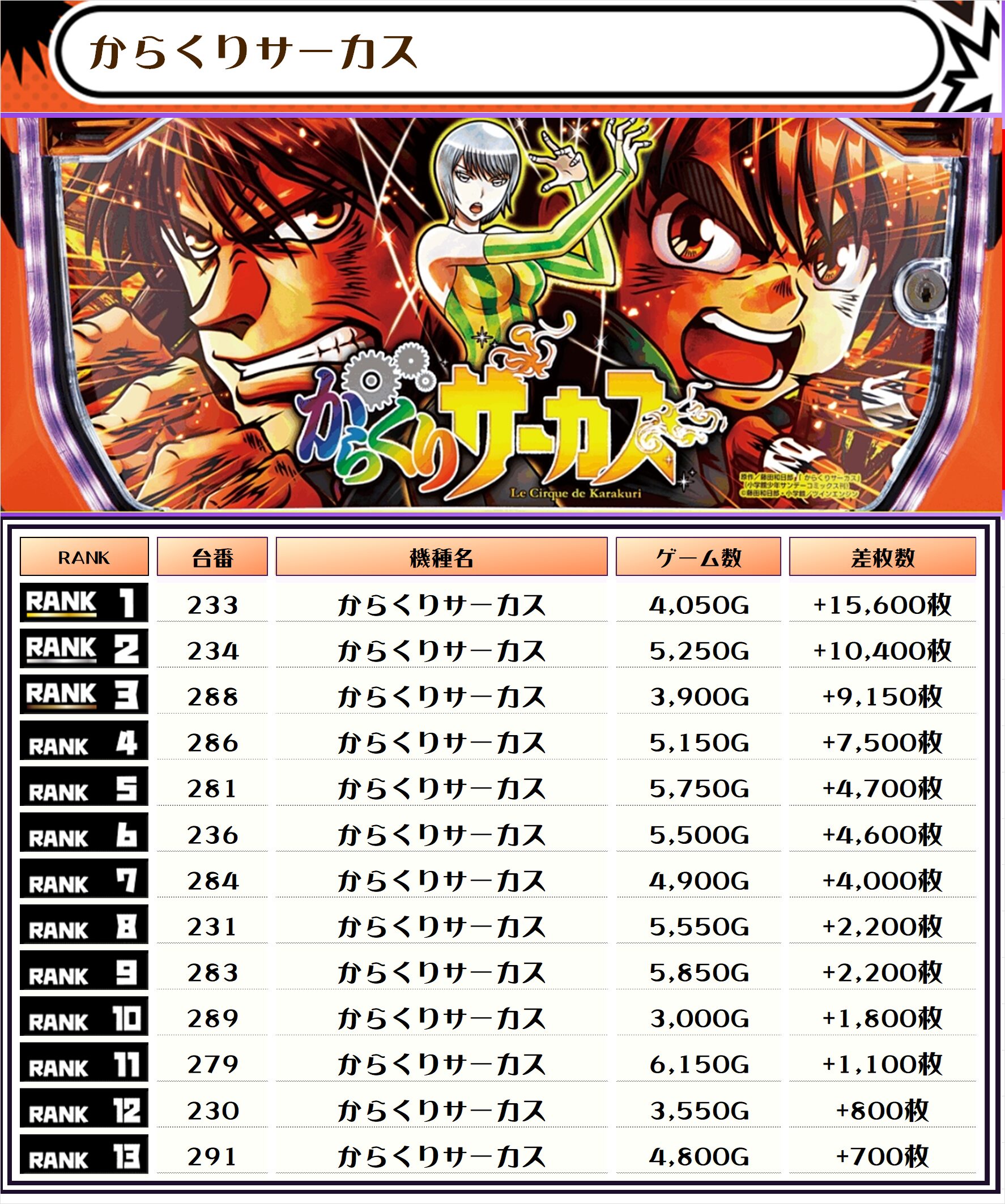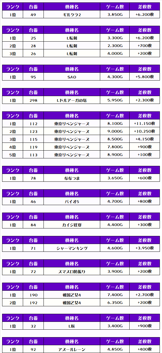 今回は驚愕の万枚オーバーが15台、そしてまたまたランキングTOP20でも8000枚オーバーの圧巻の結果に😲😲😲