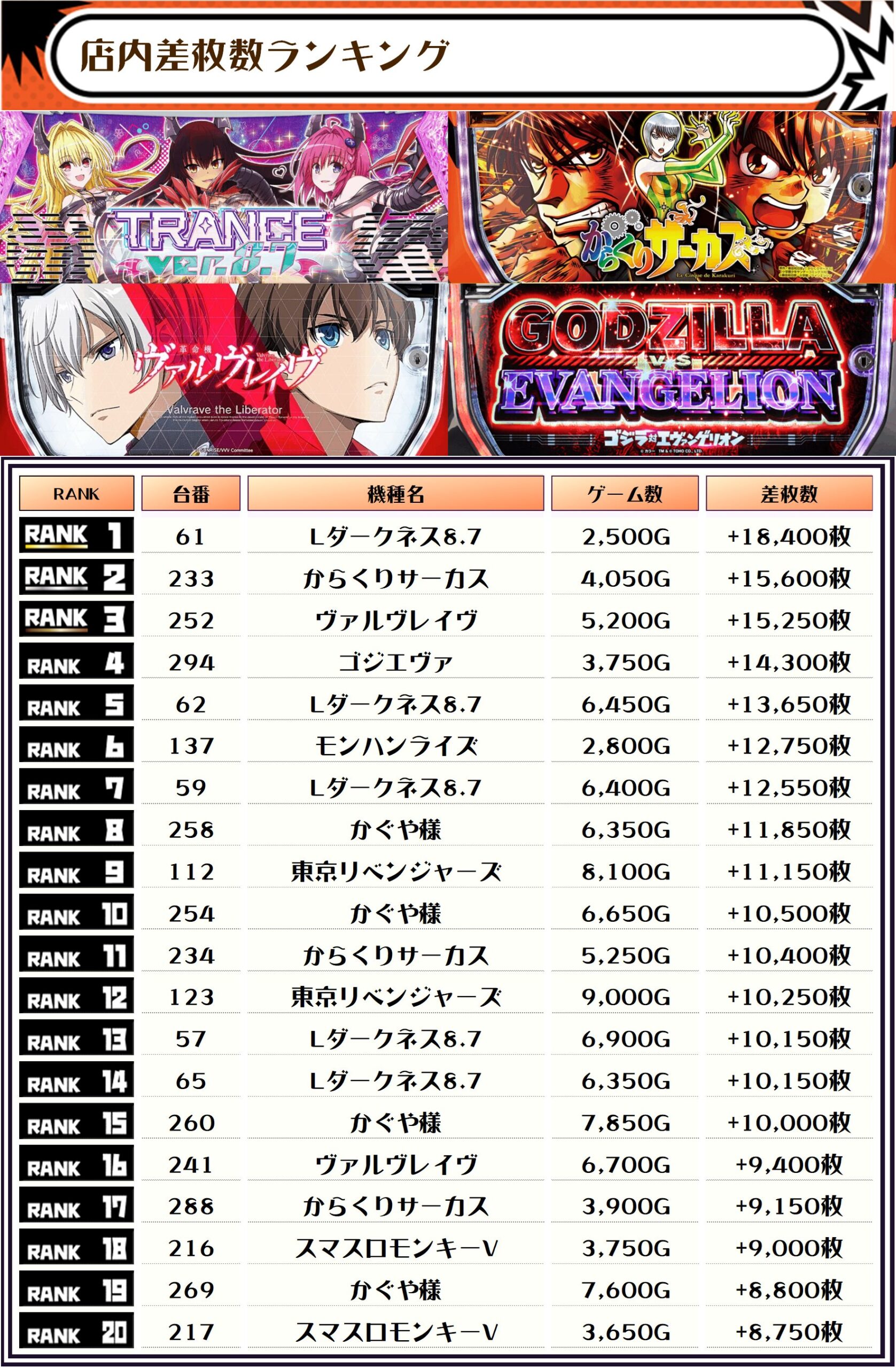 次に【機種別差枚ランキング】をチェックしていきましょう