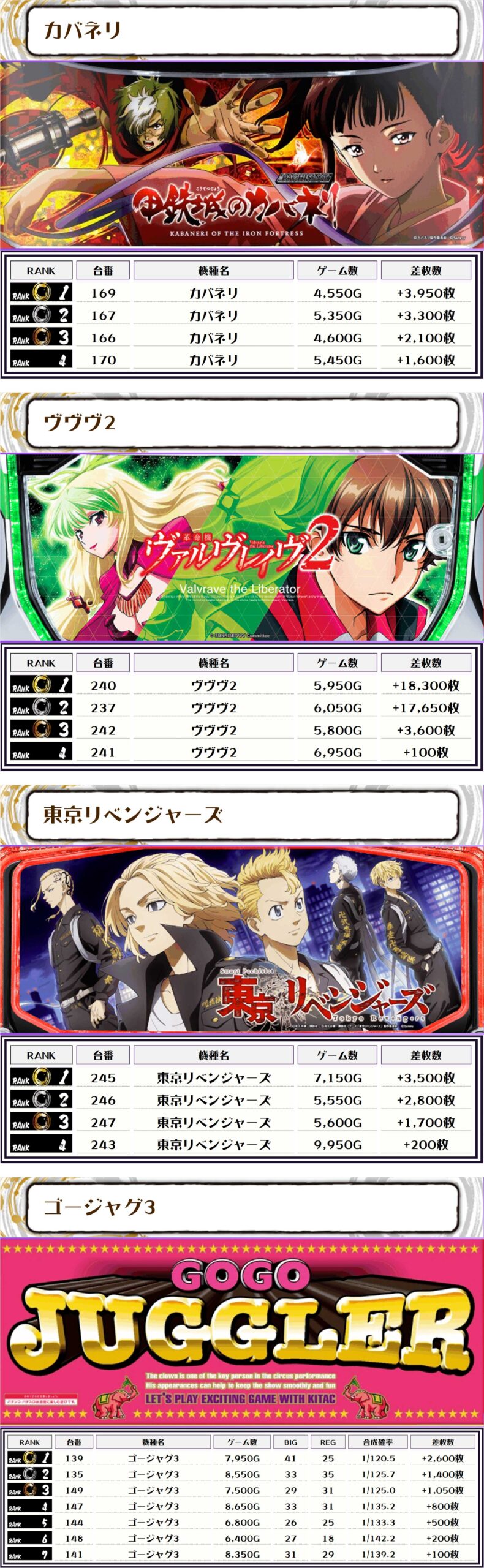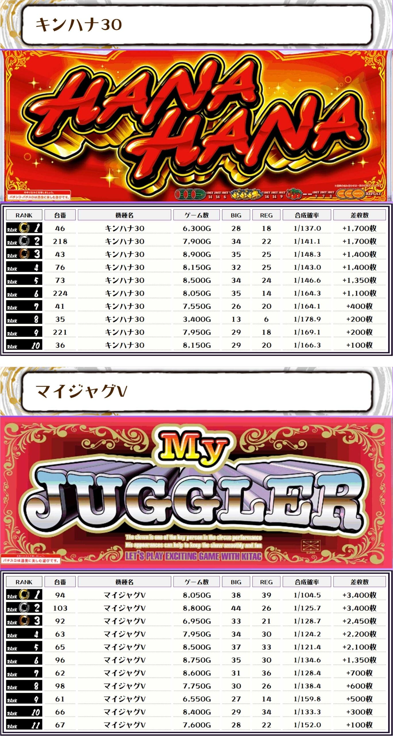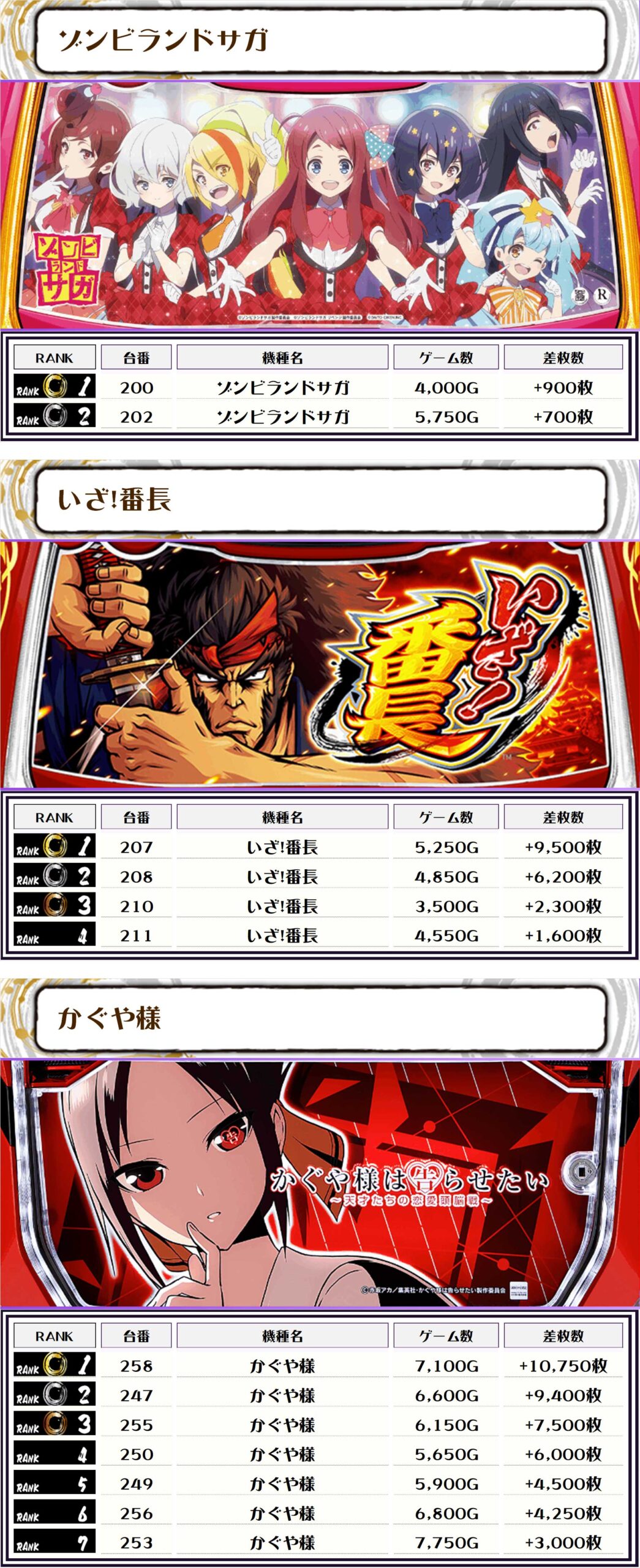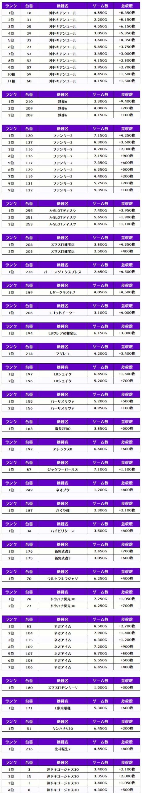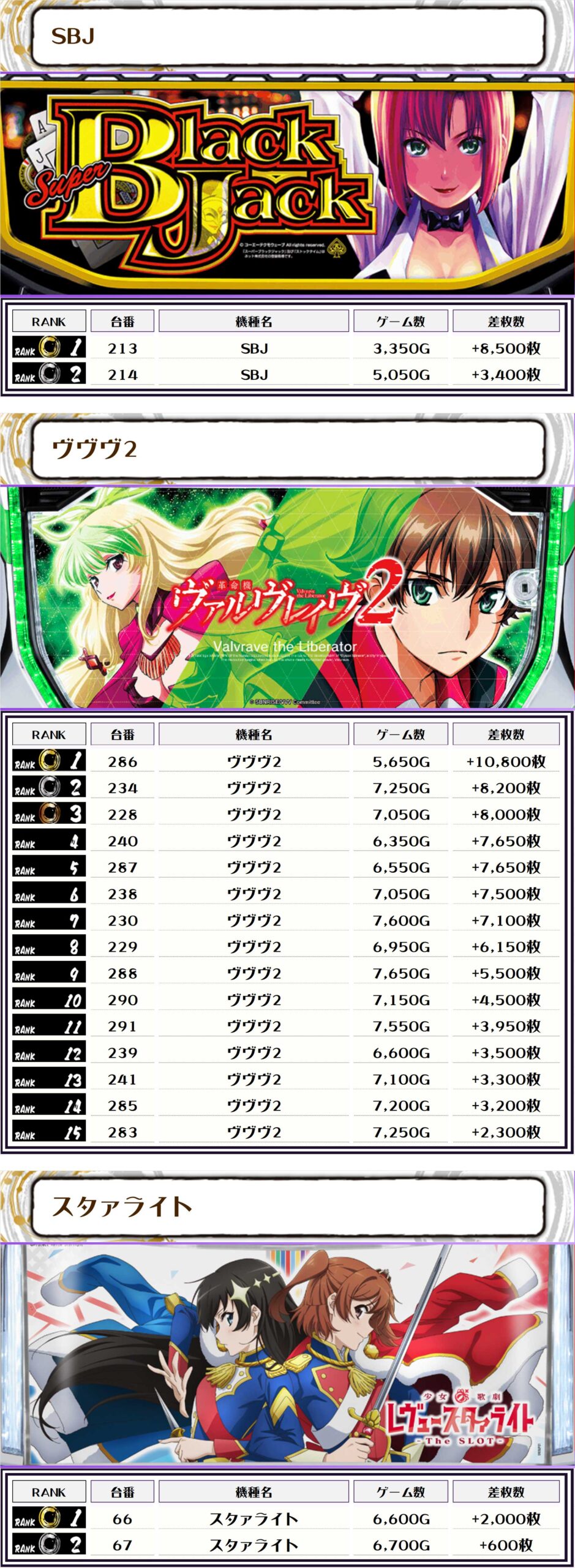 それでは、この日の機種別ランキングを見ていきましょう‼️