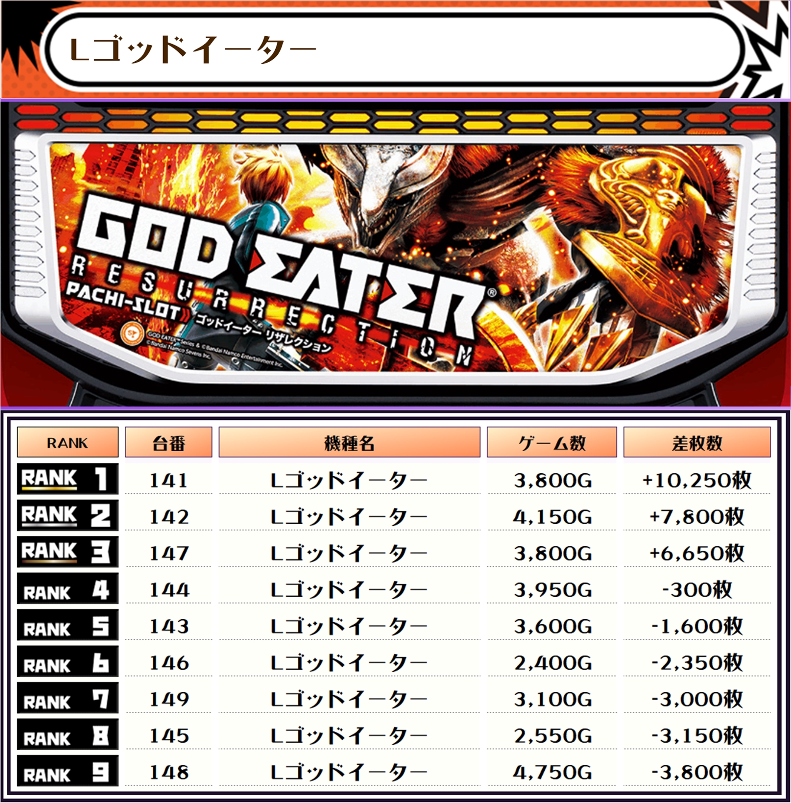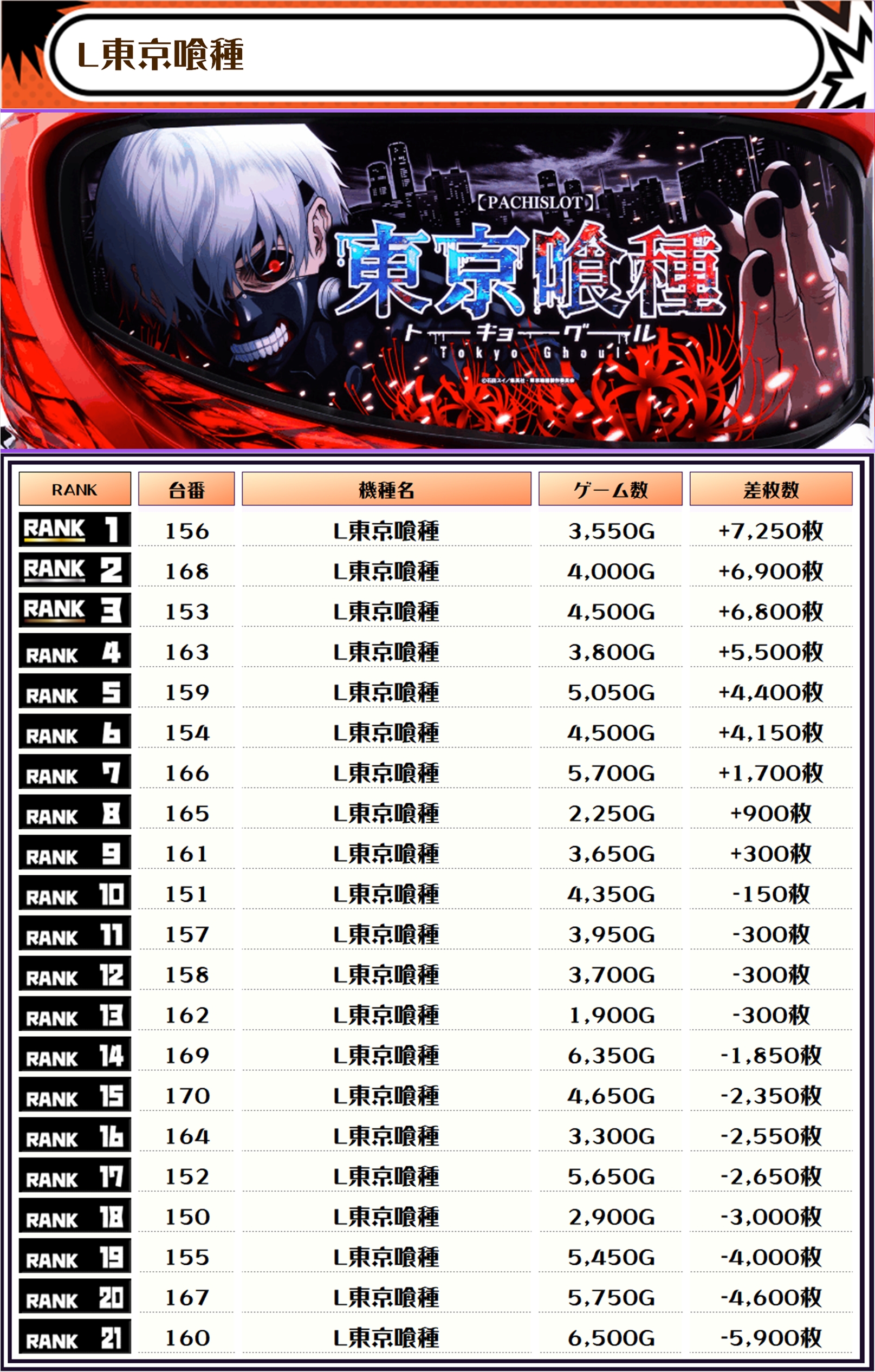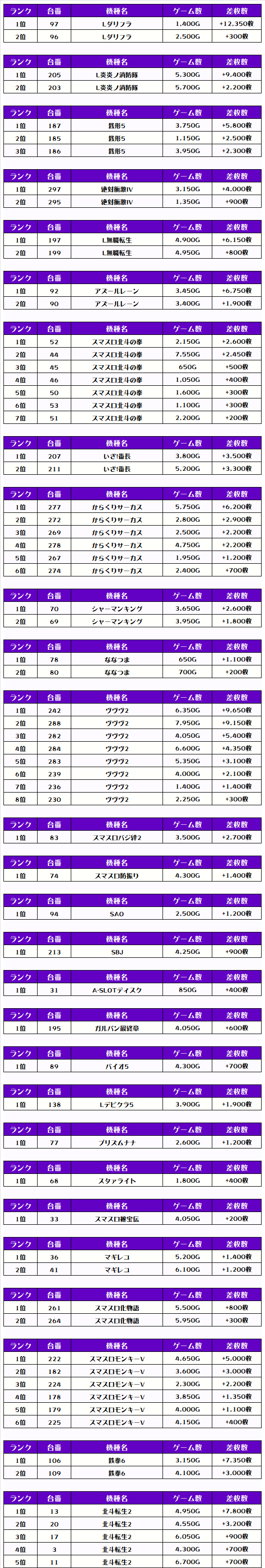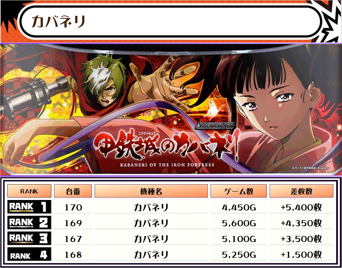 それでは、この日の機種別ランキングを見ていきましょう‼️