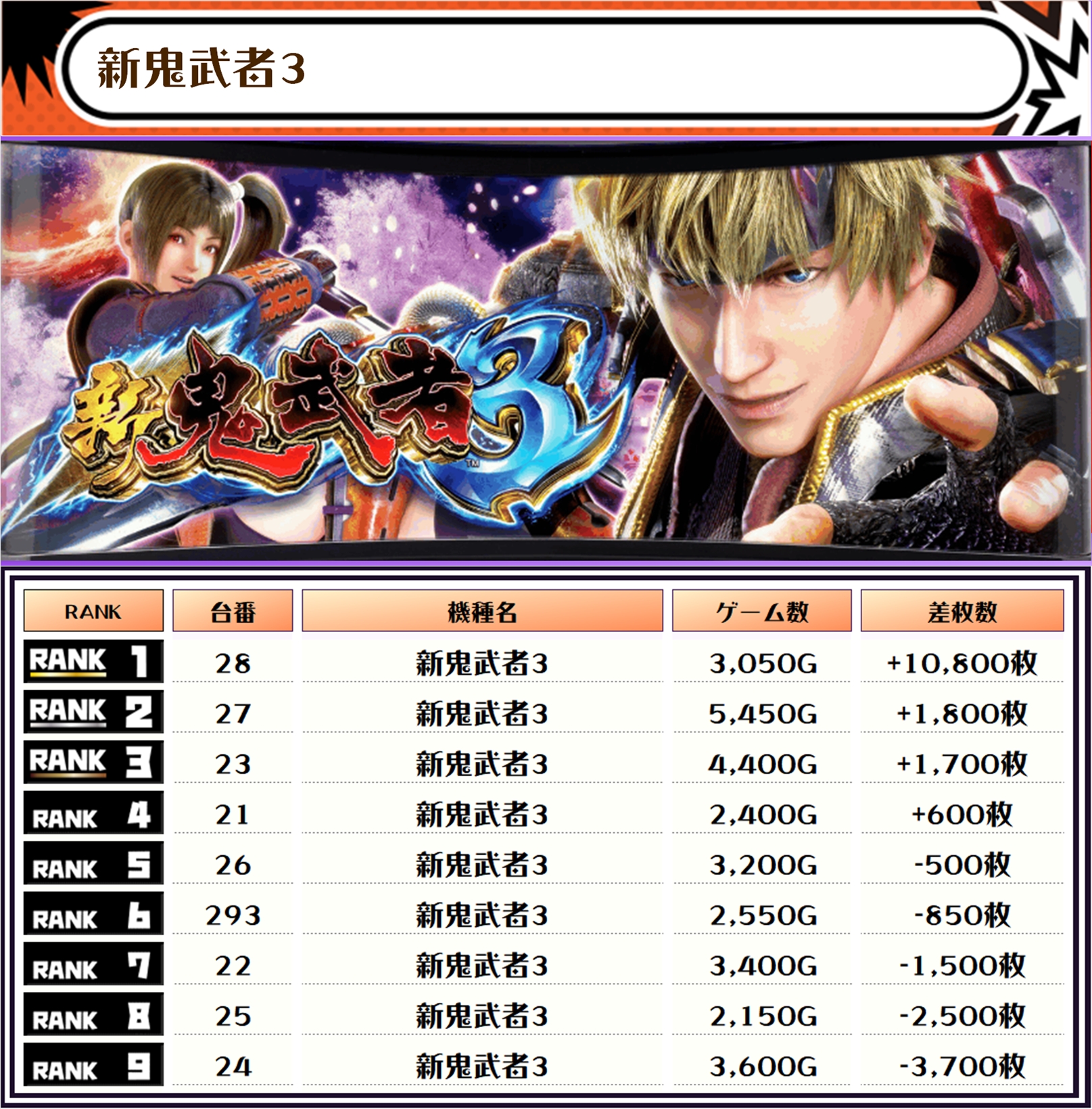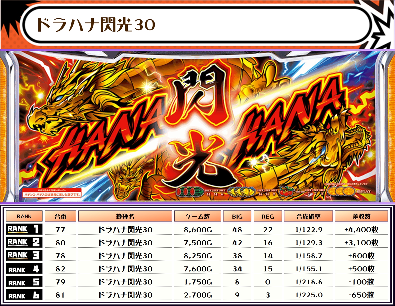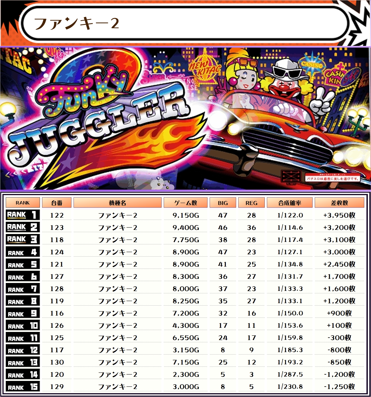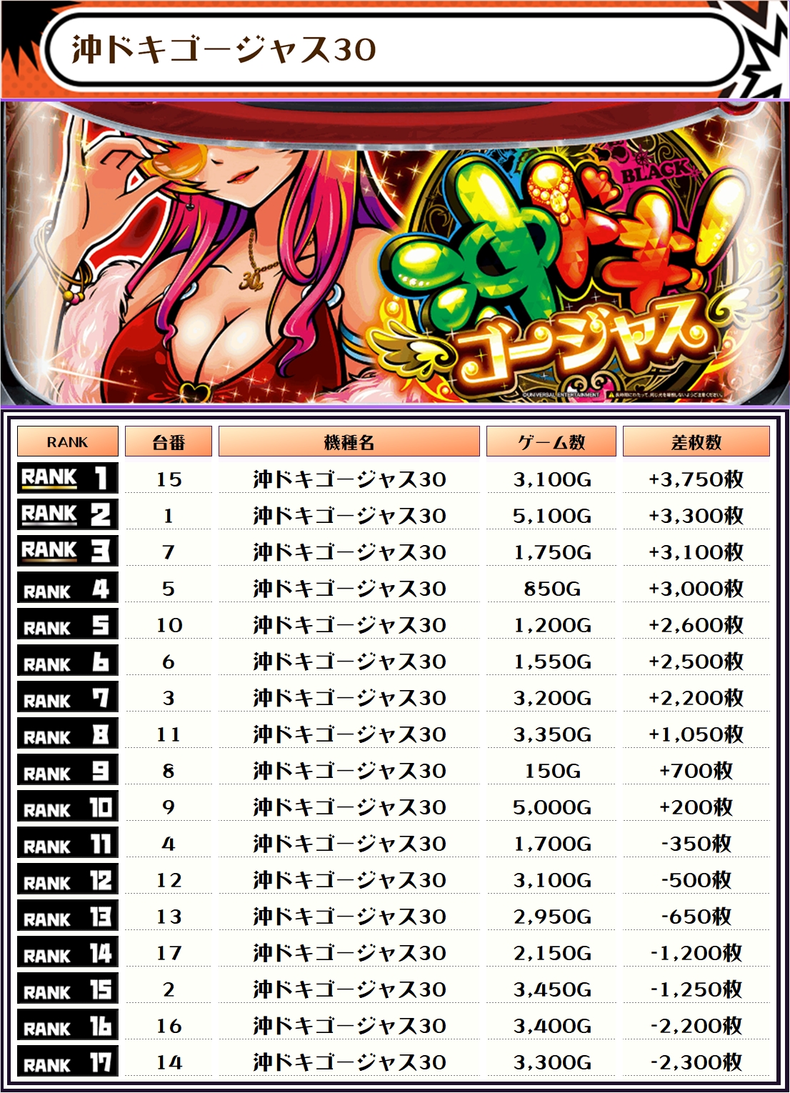 それでは、この日の機種別ランキングを見ていきましょう‼️