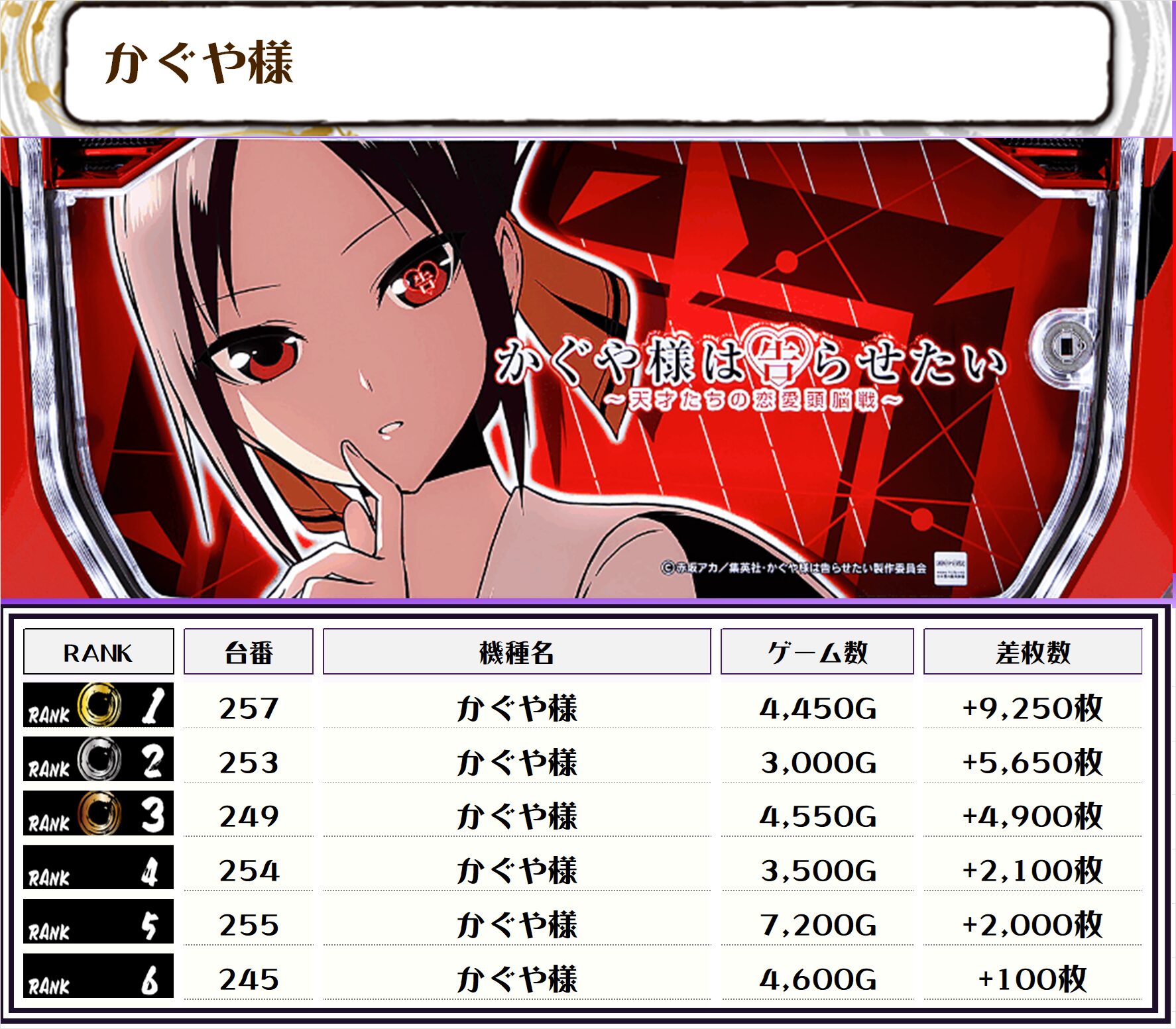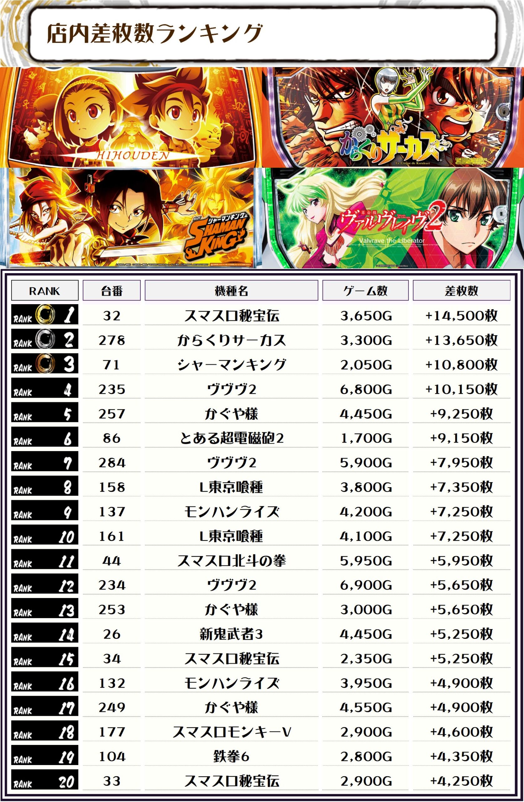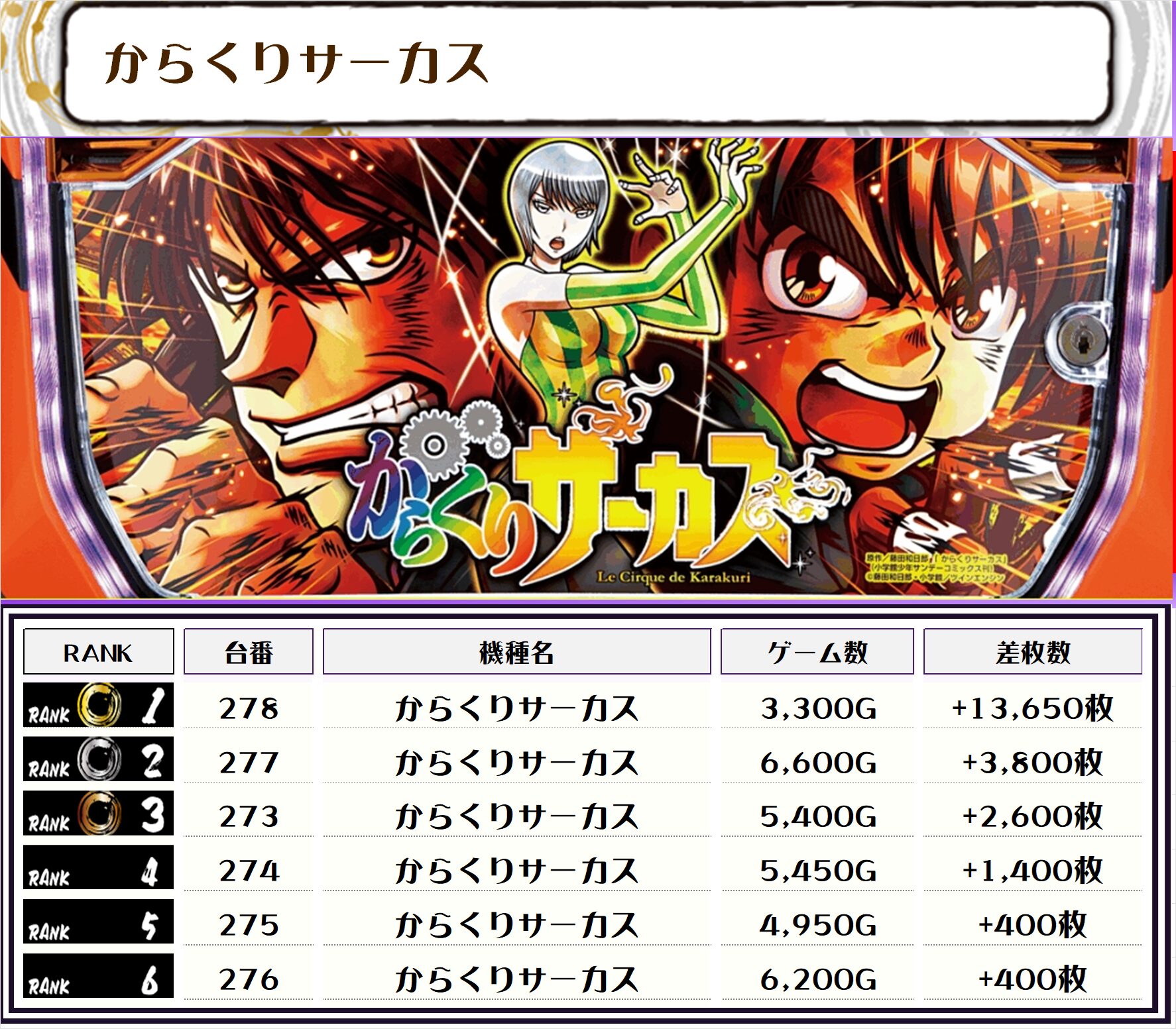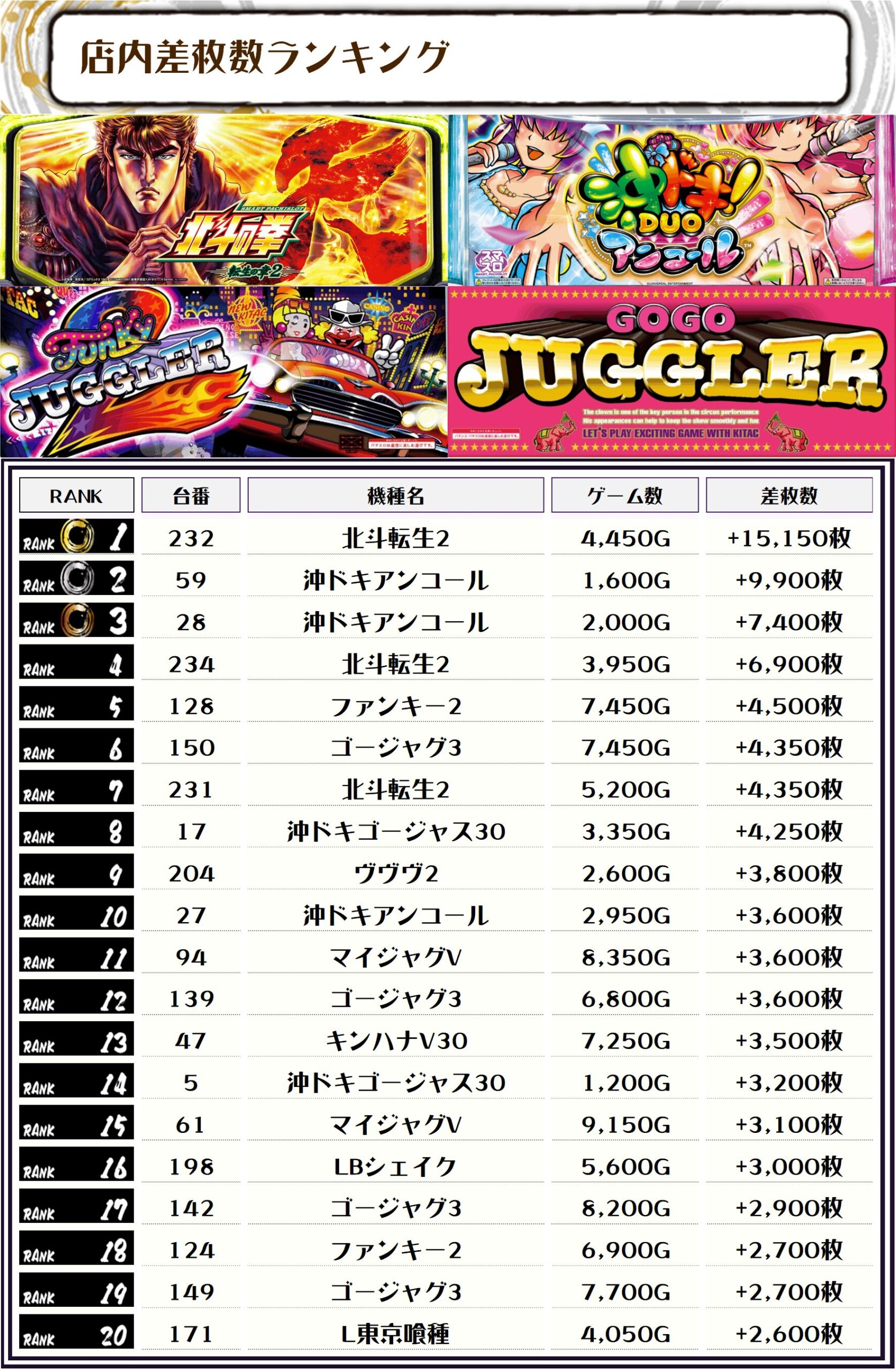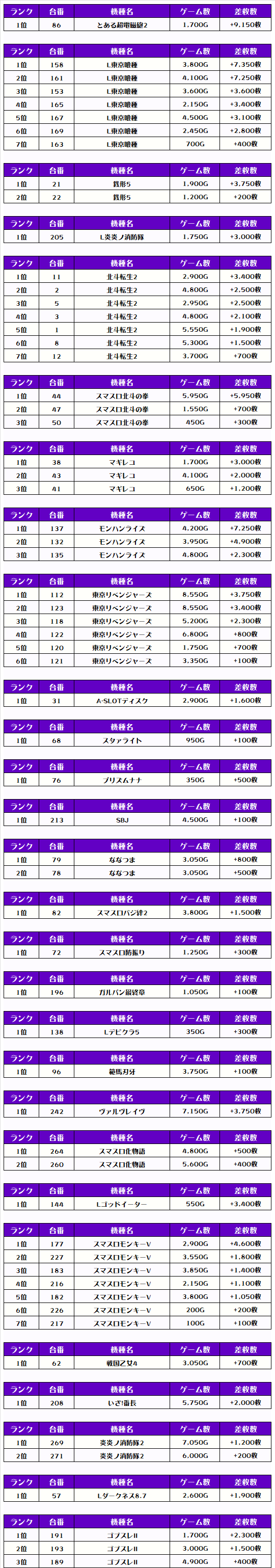 それでは、この日の機種別ランキングを見ていきましょう‼️