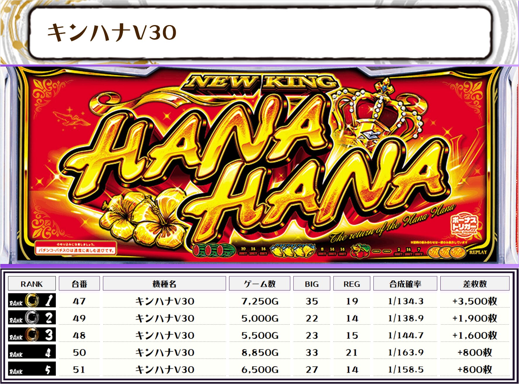 ピックアップしたのは稼働が高かった機種なのですが、今回目立っていたのはキンハナV30です✨✨