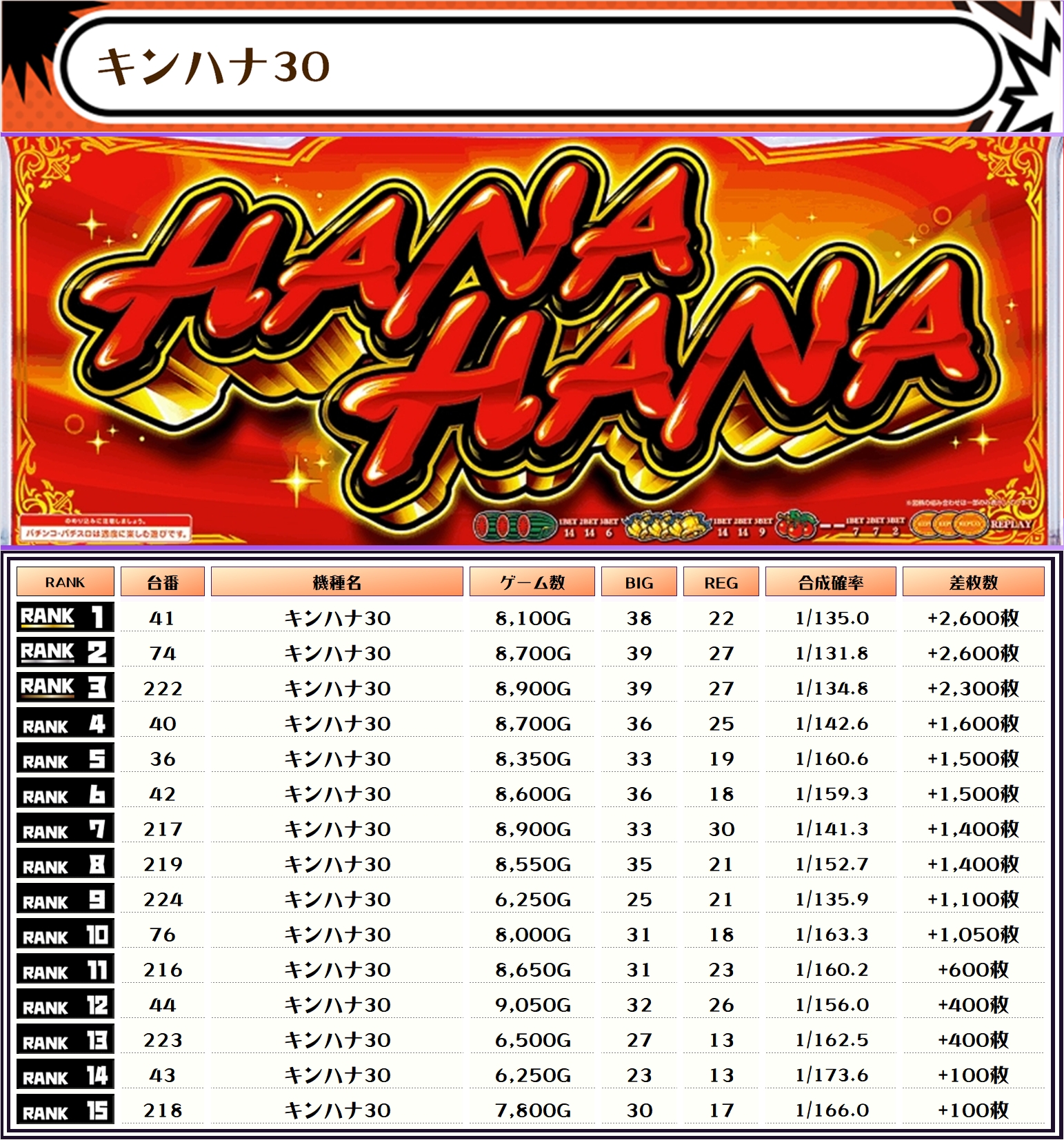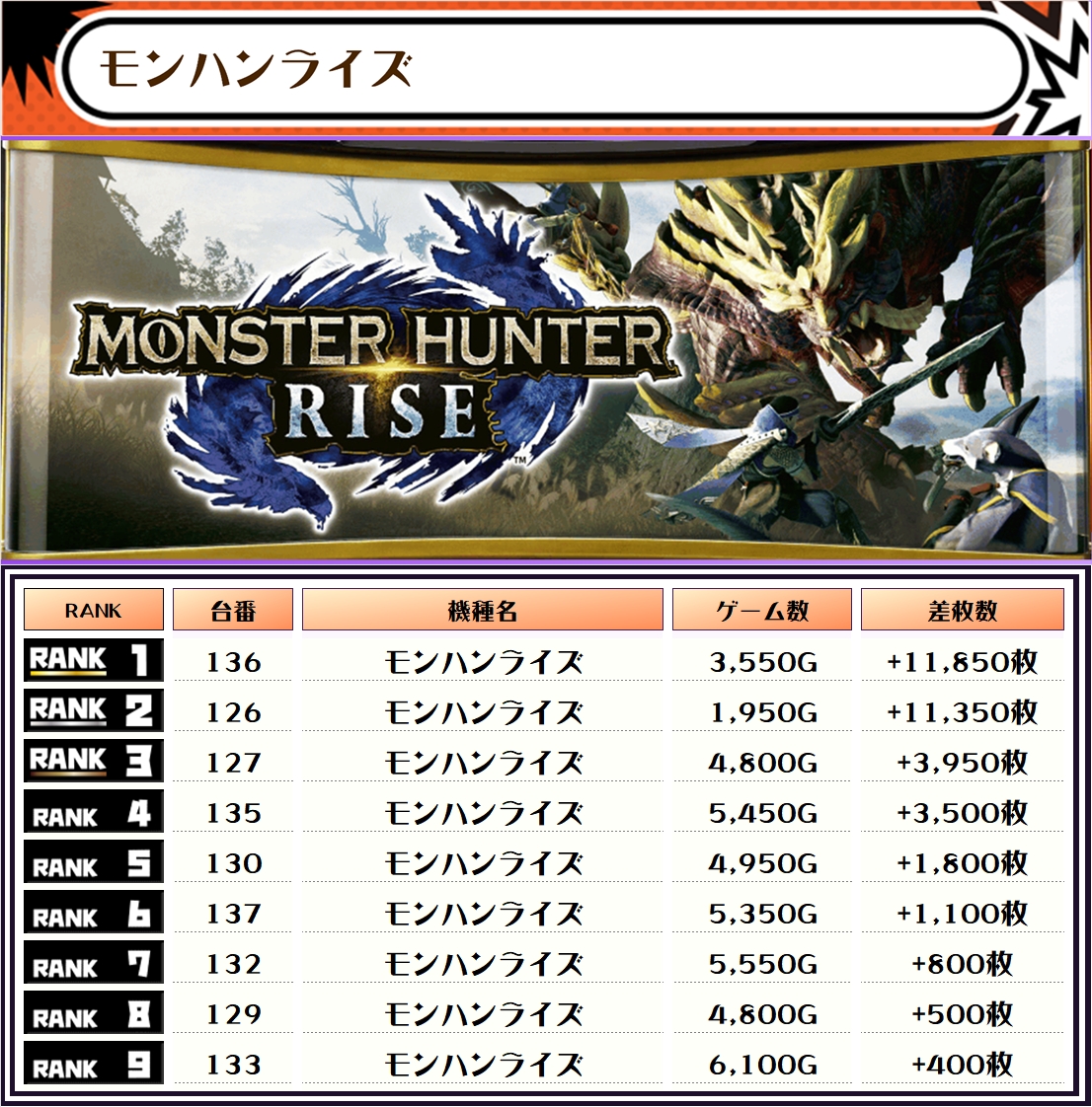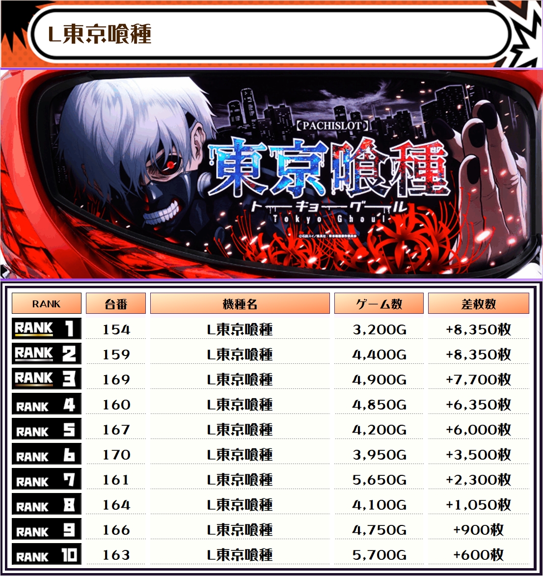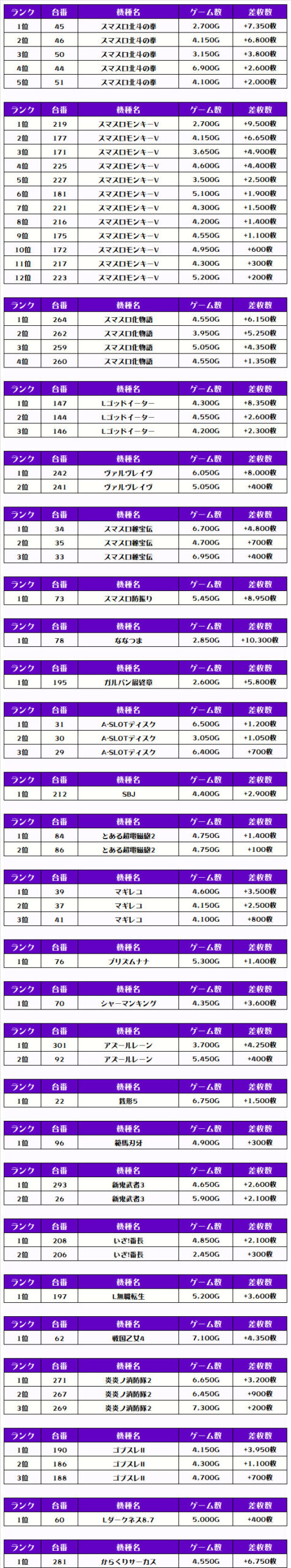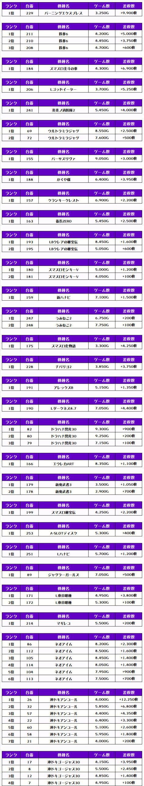 それでは、この日の機種別ランキングを見ていきましょう‼️