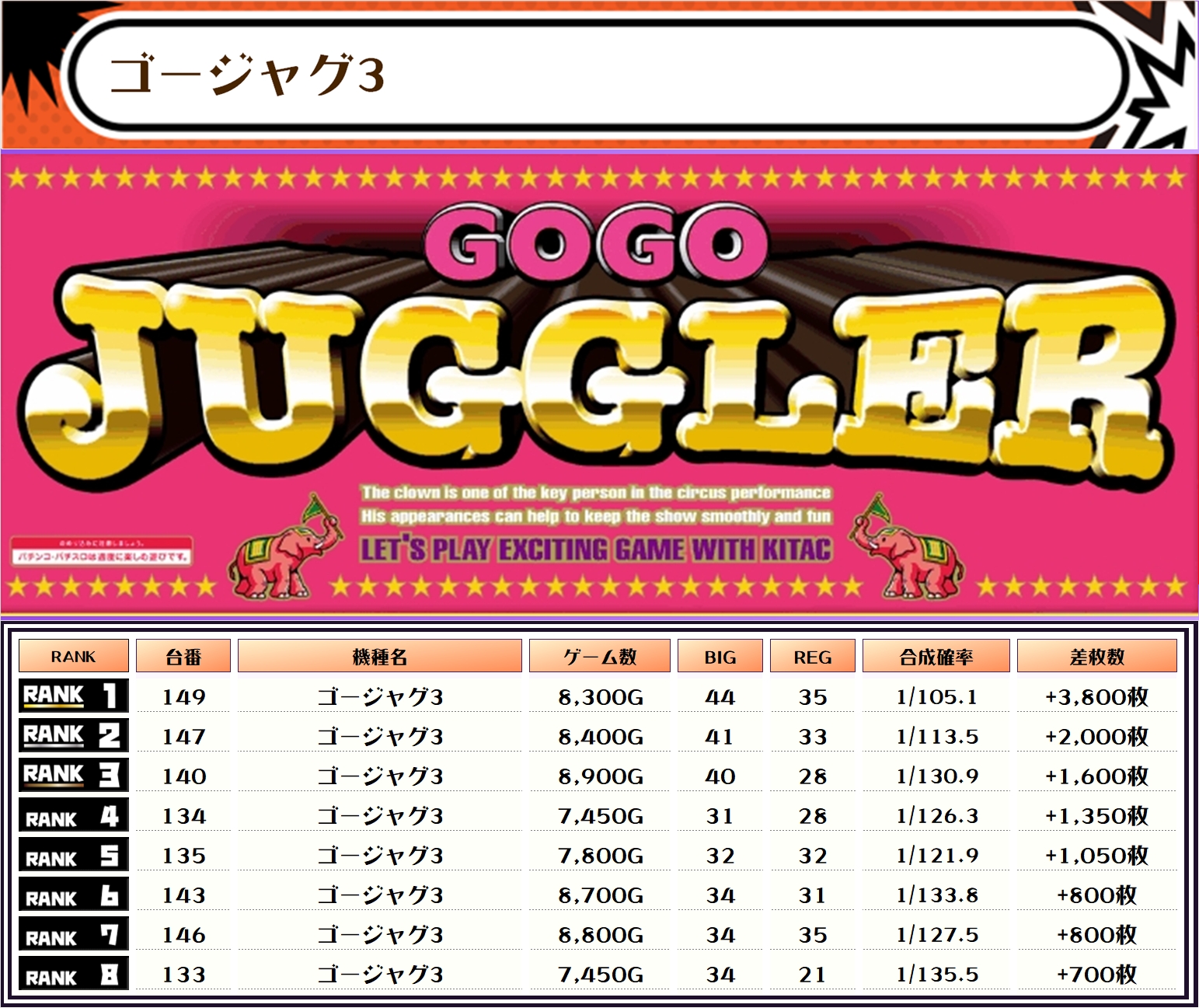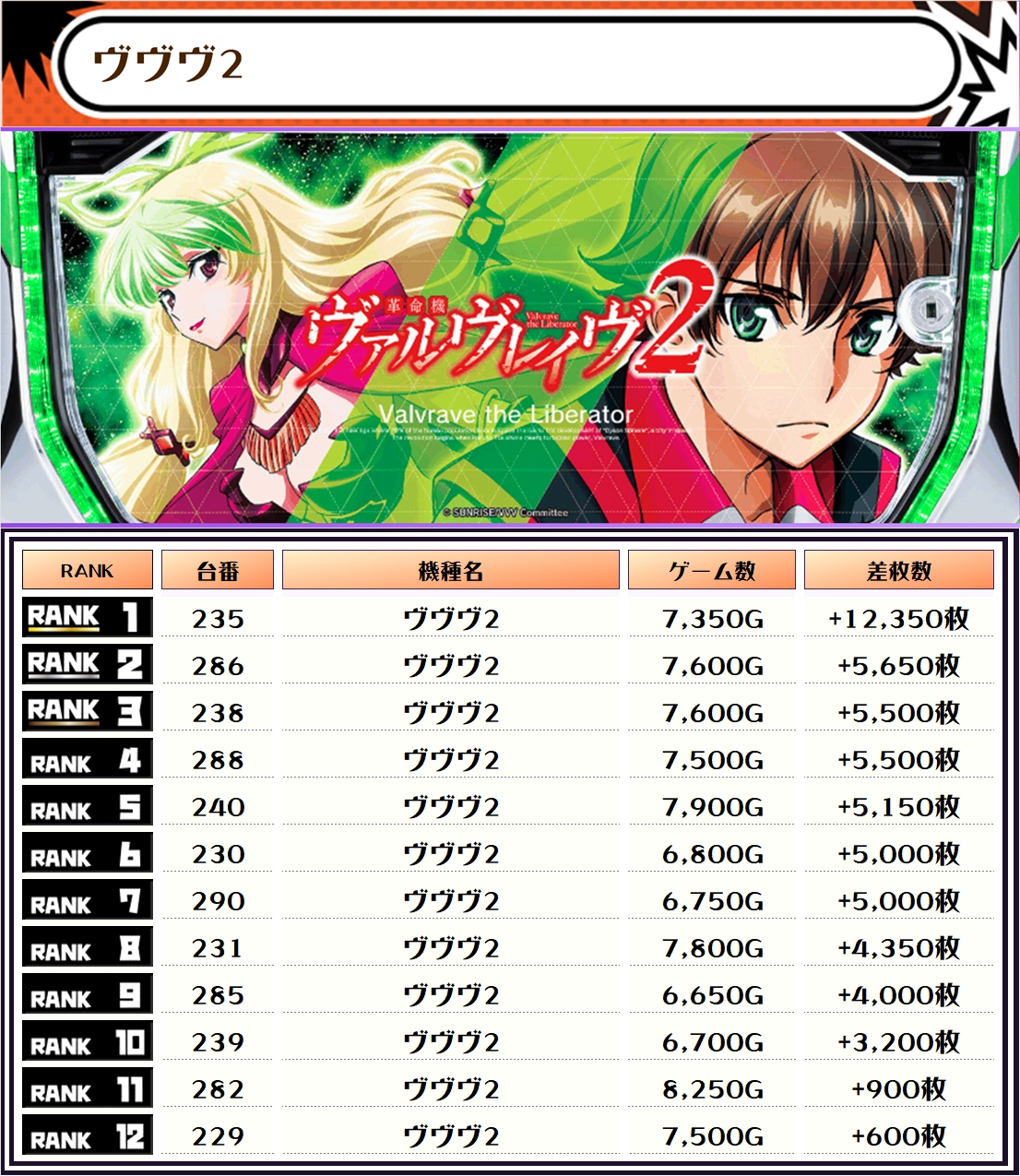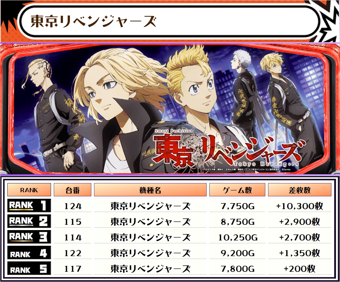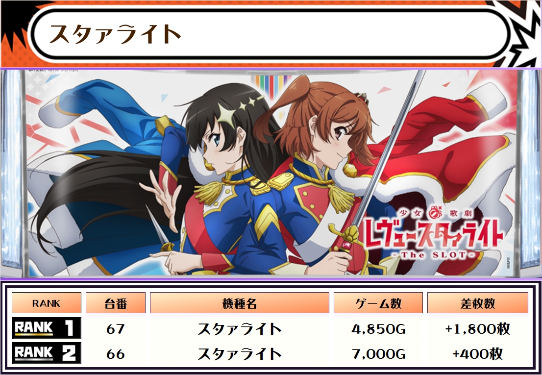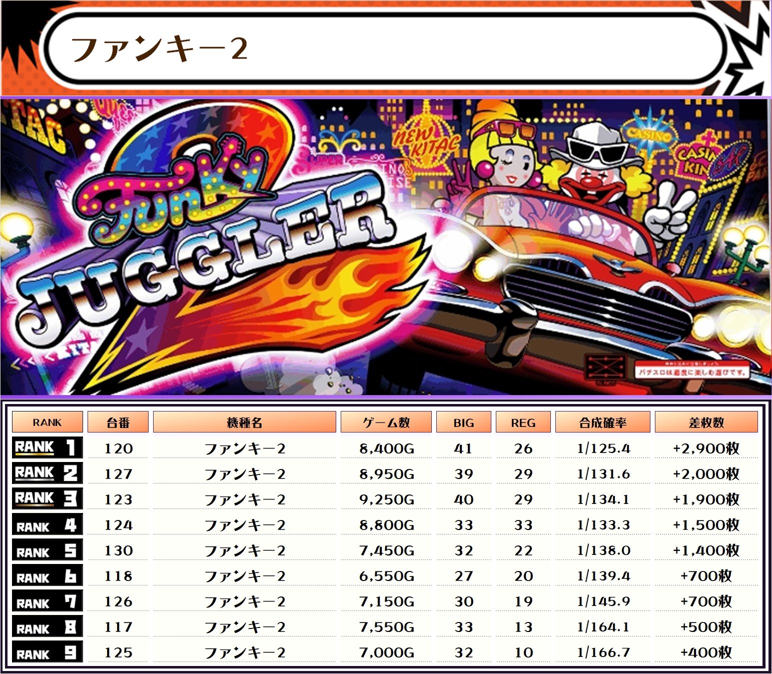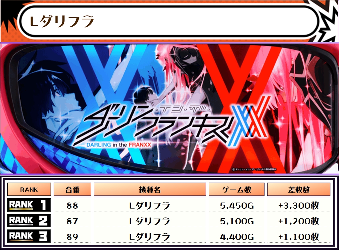 それでは、この日の機種別ランキングを見ていきましょう‼️