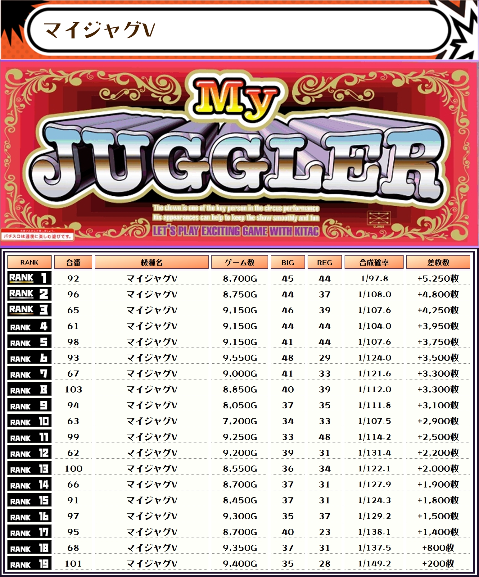 ピックアップしたのは稼働が高かった機種なのですが、最も目立っていたのはマイジャグV✨✨