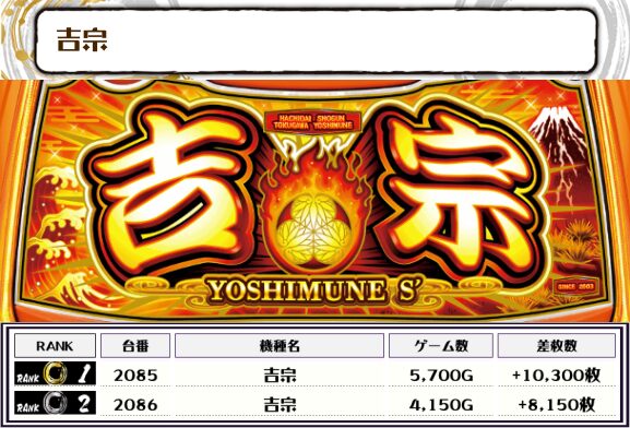 ピックアップした機種の中でも吉宗は少数台ながらもきっちりと結果を残していた優秀機種でしたね‼️