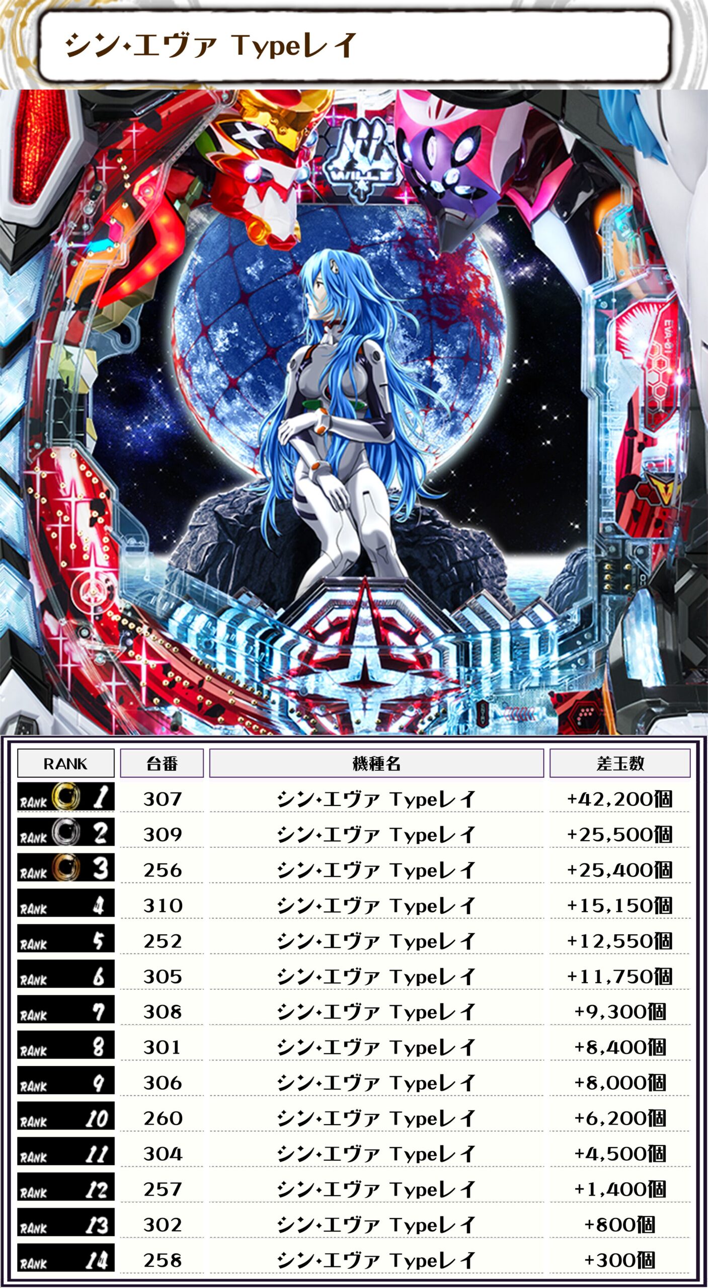 差玉トップに輝いたのは【シン・エヴァ Typeレイ・307番台】の+42,200発‼️