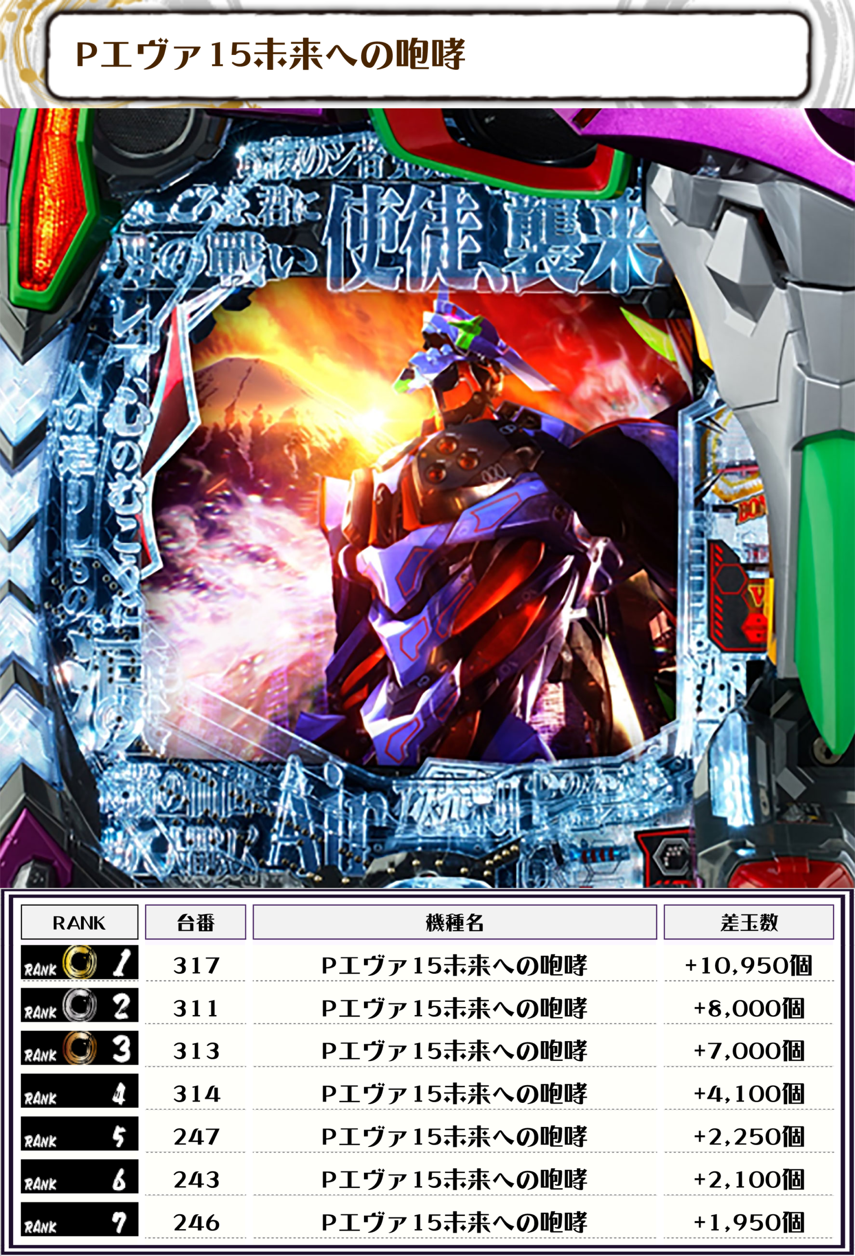 また2位にも【eエヴァ17 はじまりの記憶・258番台】の+29,650発、そして3位も【eエヴァ17 はじまりの記憶・255番台】の+29,050発がランクインしましたっ🏆