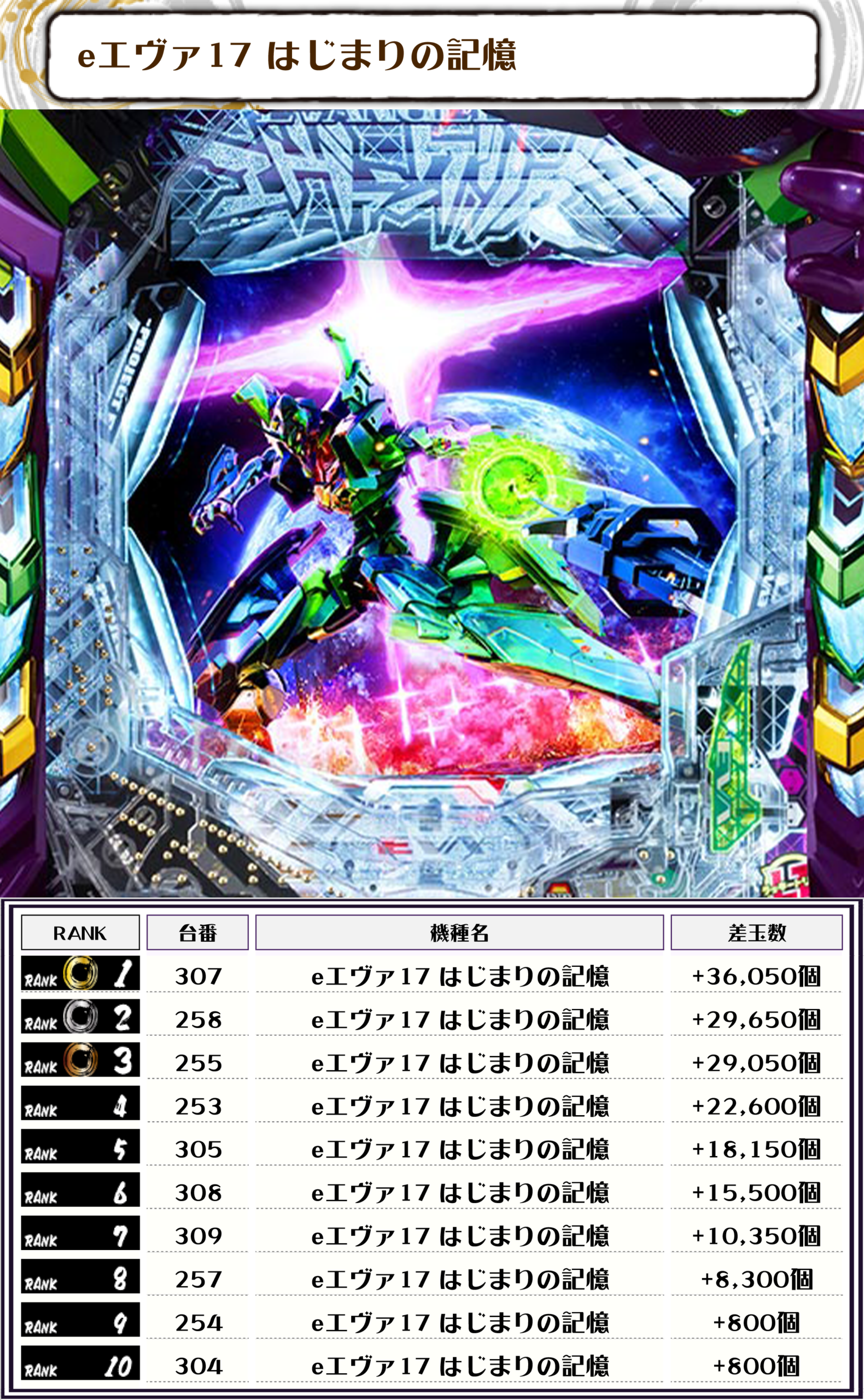 差玉トップに輝いたのは【eエヴァ17 はじまりの記憶・307番台】の+36,050発‼️