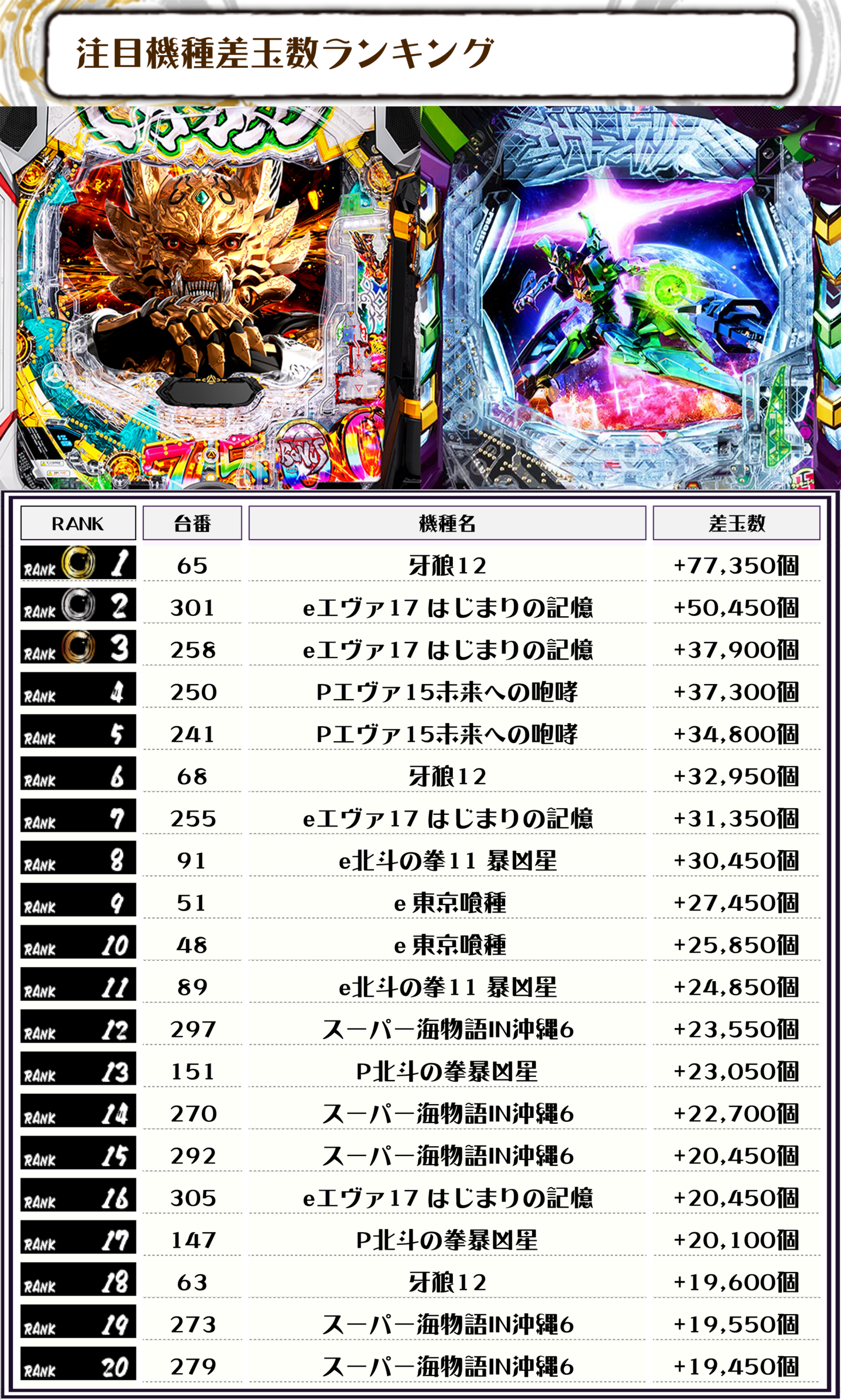 また、私の注目した機種をまとめた差玉ランキングがこちら❗️
