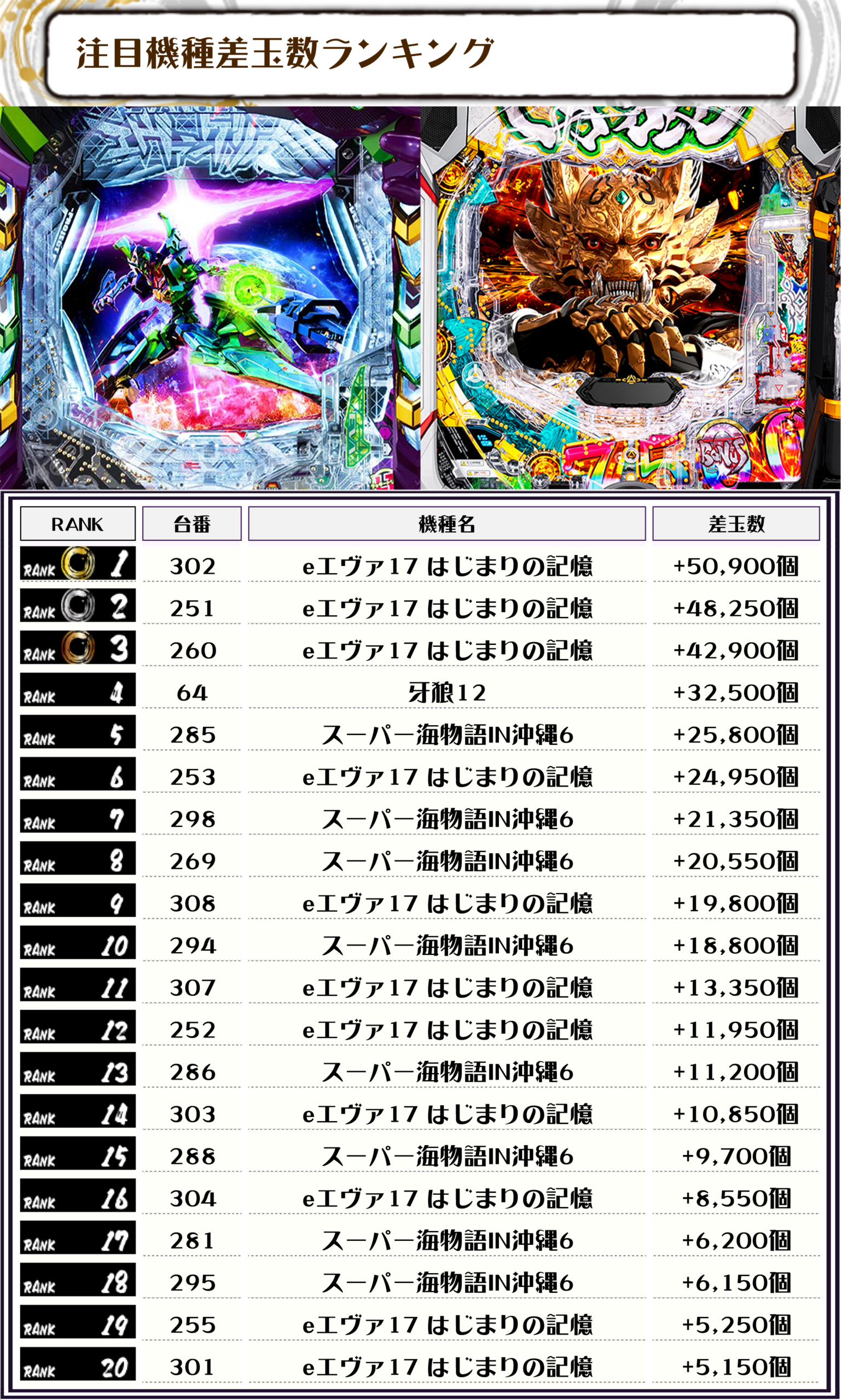 また、私の注目した機種をまとめた差玉ランキングがこちら❗️