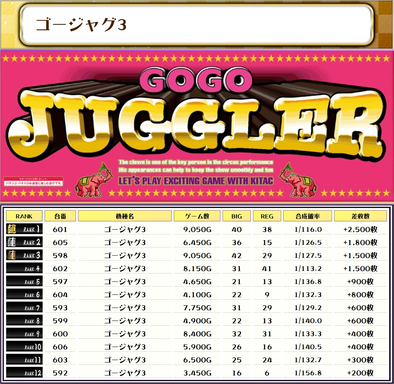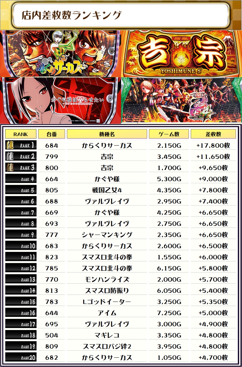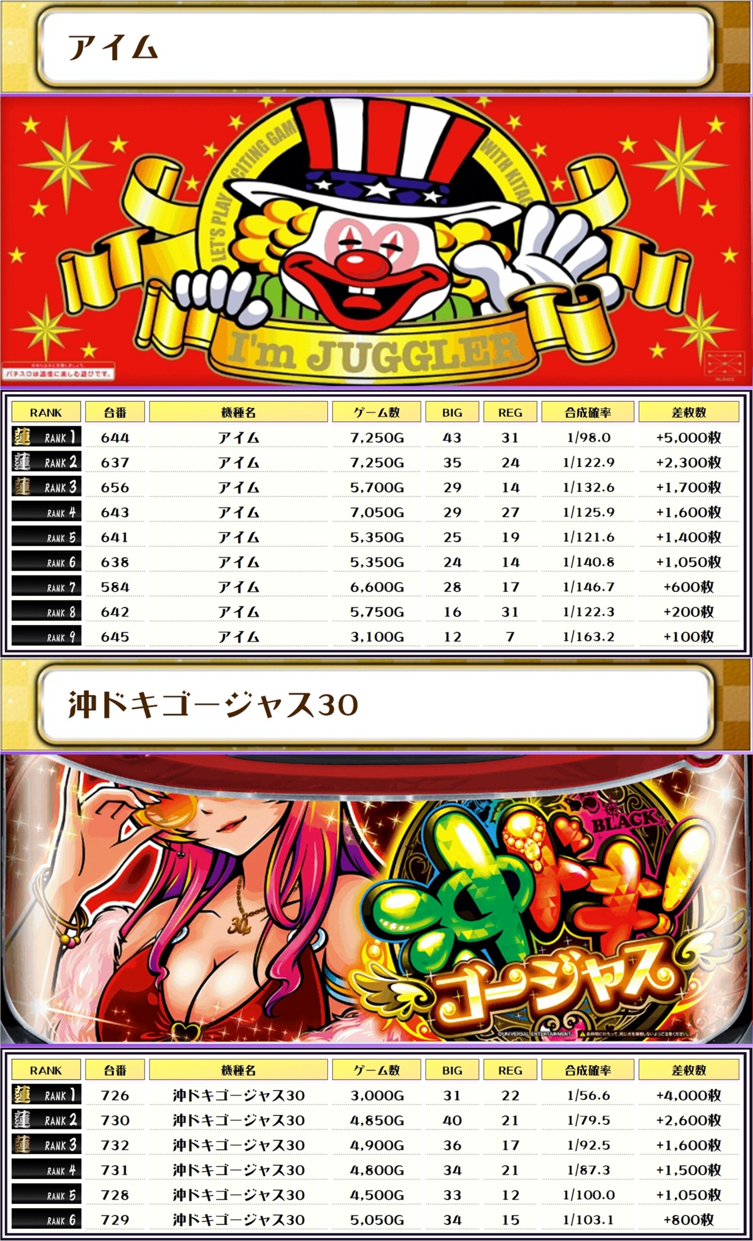 それでは、この日の【機種別差枚ランキング】を見ていきましょう❗️