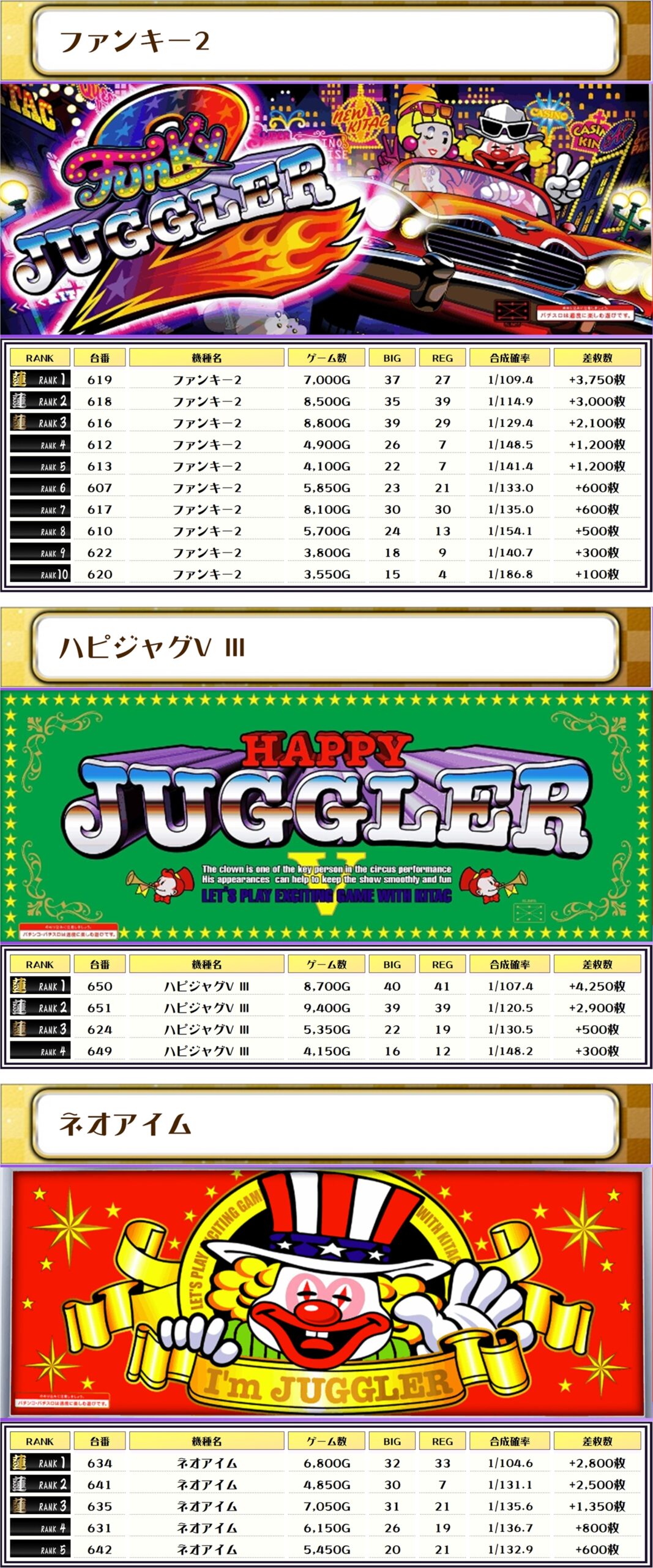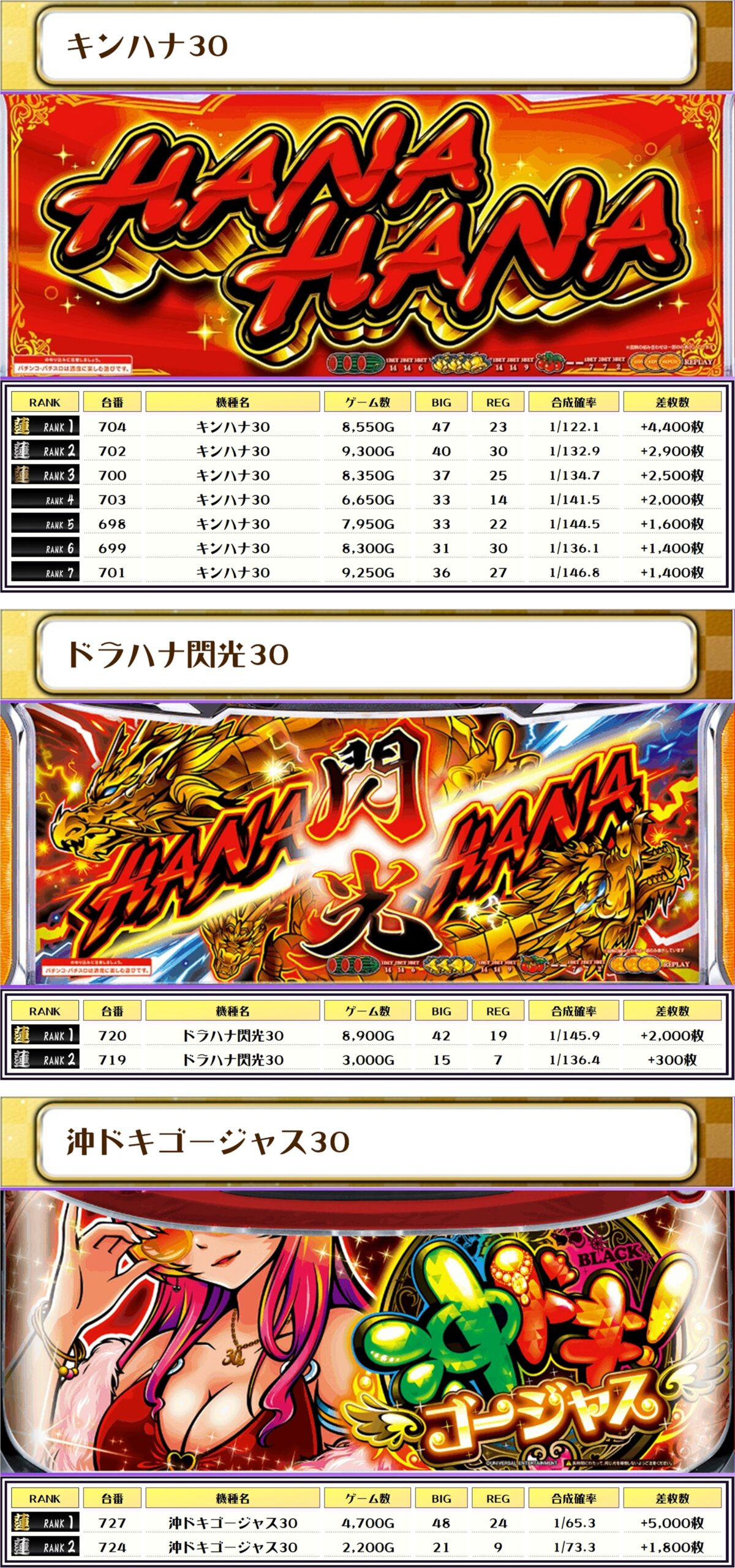 それでは、この日の【機種別差枚ランキング】を見ていきましょう❗️