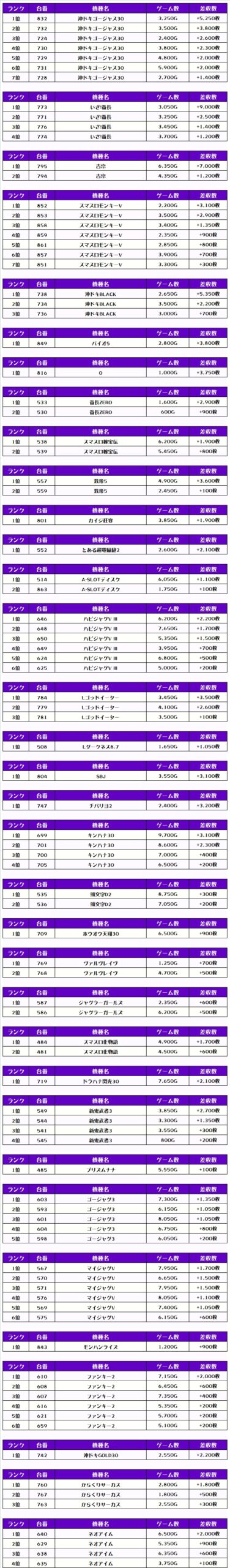 今回ピックアップしたのは勝率が高かったり、調査時に稼働の良さが目立っていた機種となります✍