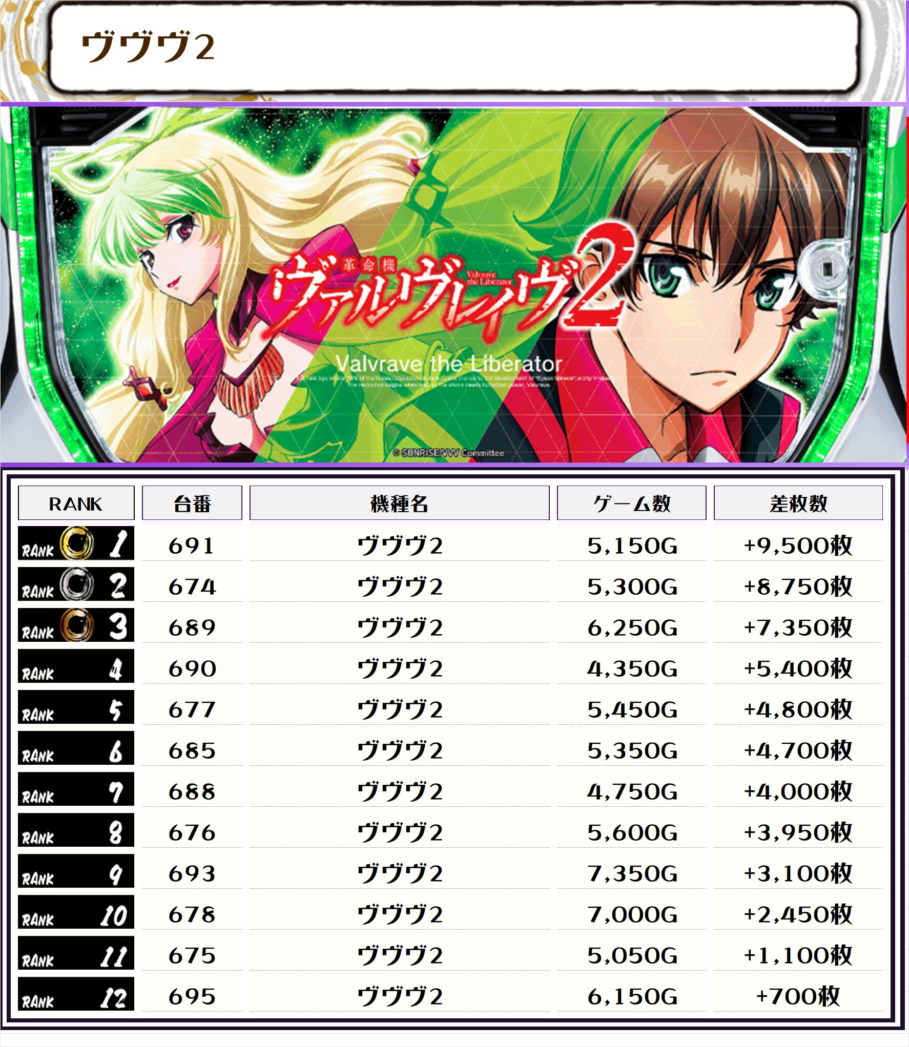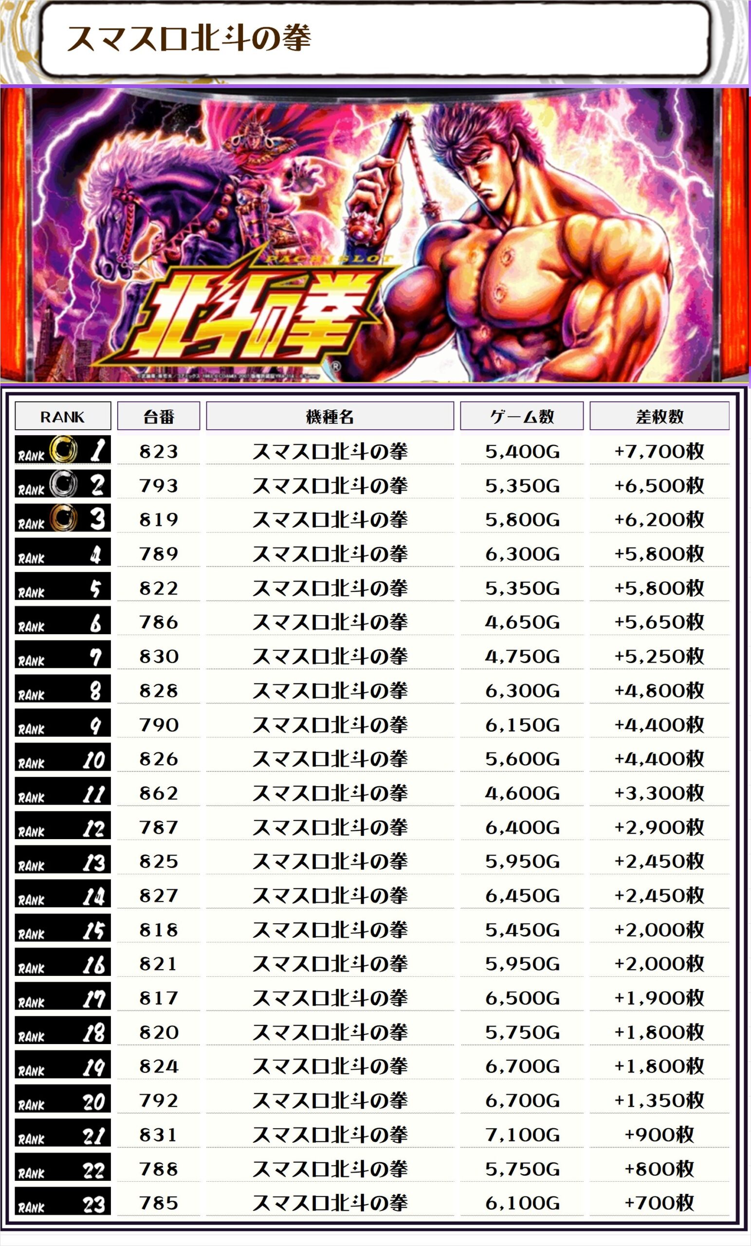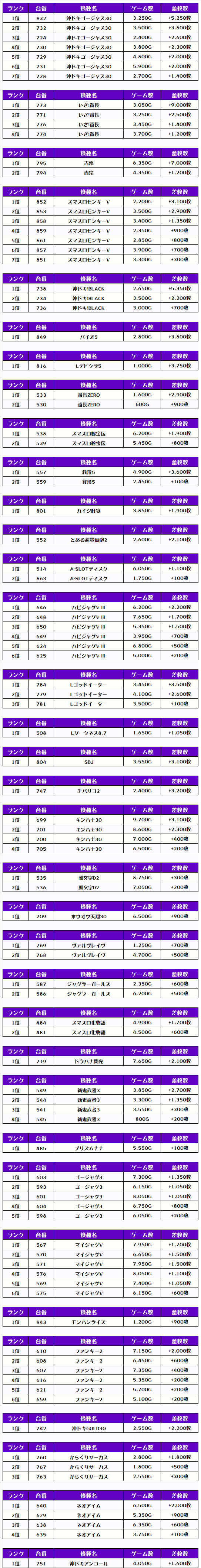また、この日の注目台差枚ランキングがこちら❗️