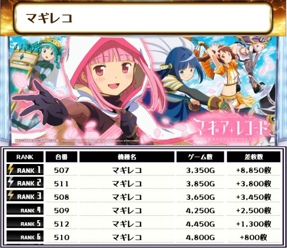 2位には【マギレコ・507番台】の+8,850枚、3位には【スマスロモンキーV・513番台】の+8,400枚がランクイン💥💥💥💥💥