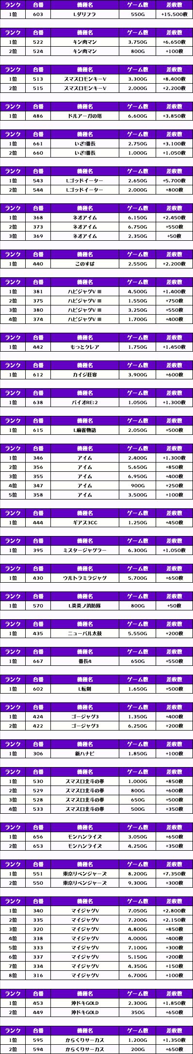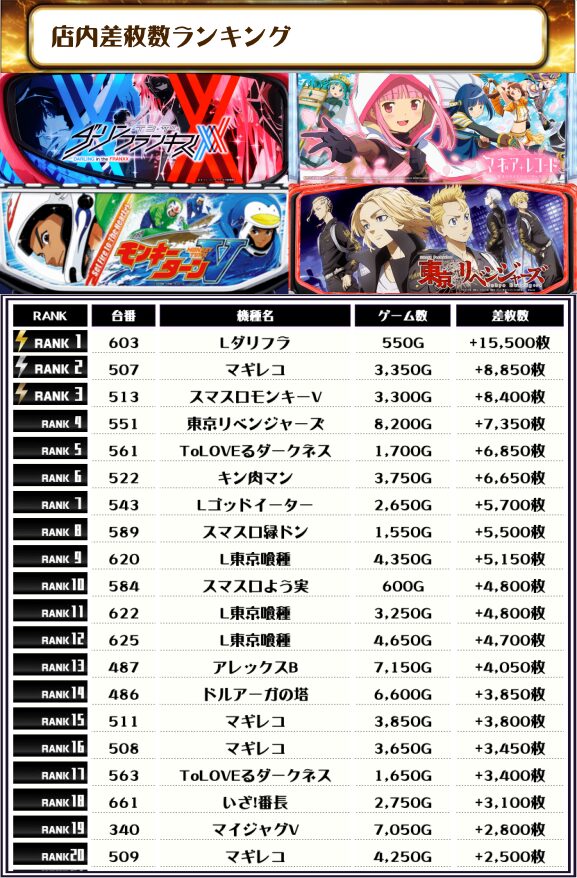 続いては「店内全台の差枚ランキング」をご覧ください!