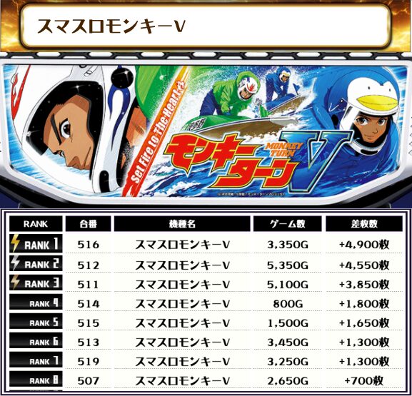 続いては「店内全台の差枚ランキング」をご覧ください!