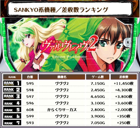 また、2位には【ヴヴヴ2・598番台】の+4,300枚、そして3位には【ヴヴヴ2・597番台】の+3,800枚がランクイン‼️