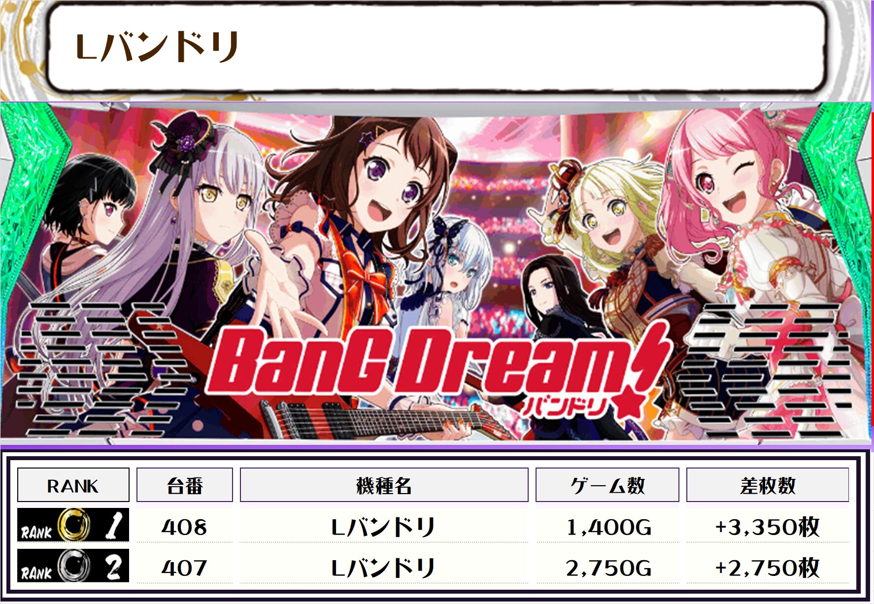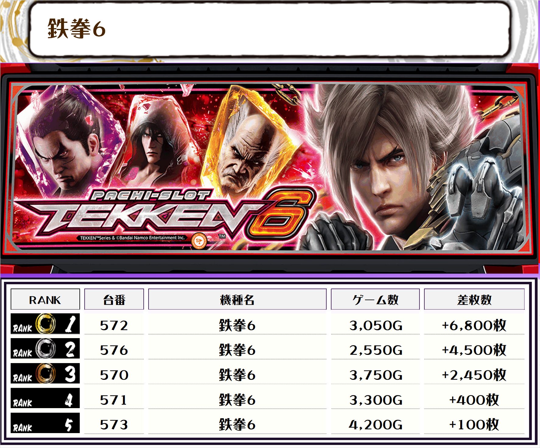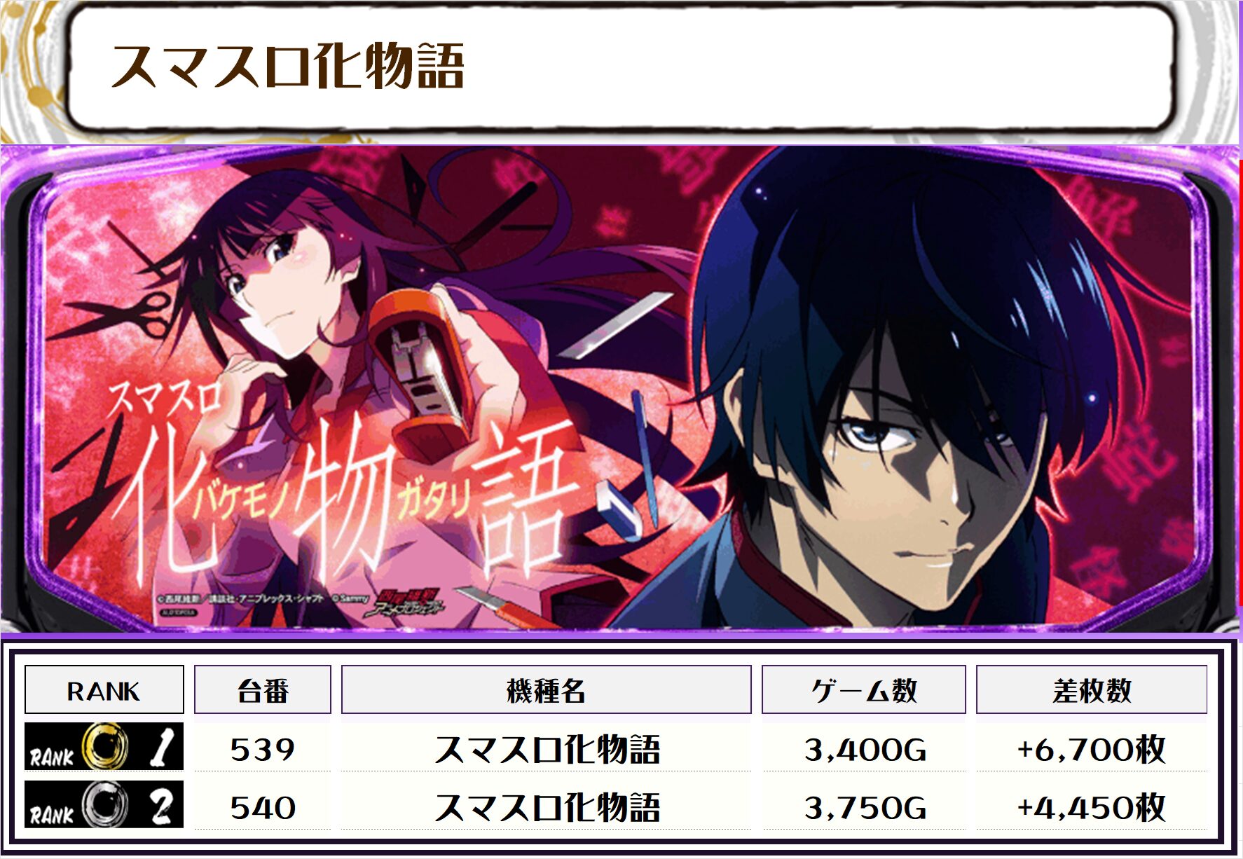2位には【L東京喰種・513番台】の+9,050枚、そして3位には【新鬼武者3・657番台】の+7,950枚がランクインっ🏆🏆🏆🏆