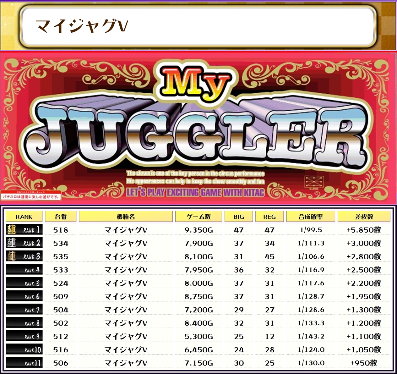 そして、ピックアップしたのは高稼働+優秀台や、単品での優秀台が多かったと思われる機種たち👍