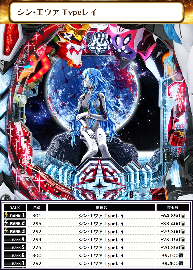 今回の出玉TOPは【シン・エヴァ Typeレイ・301番台】の+64,850個‼️