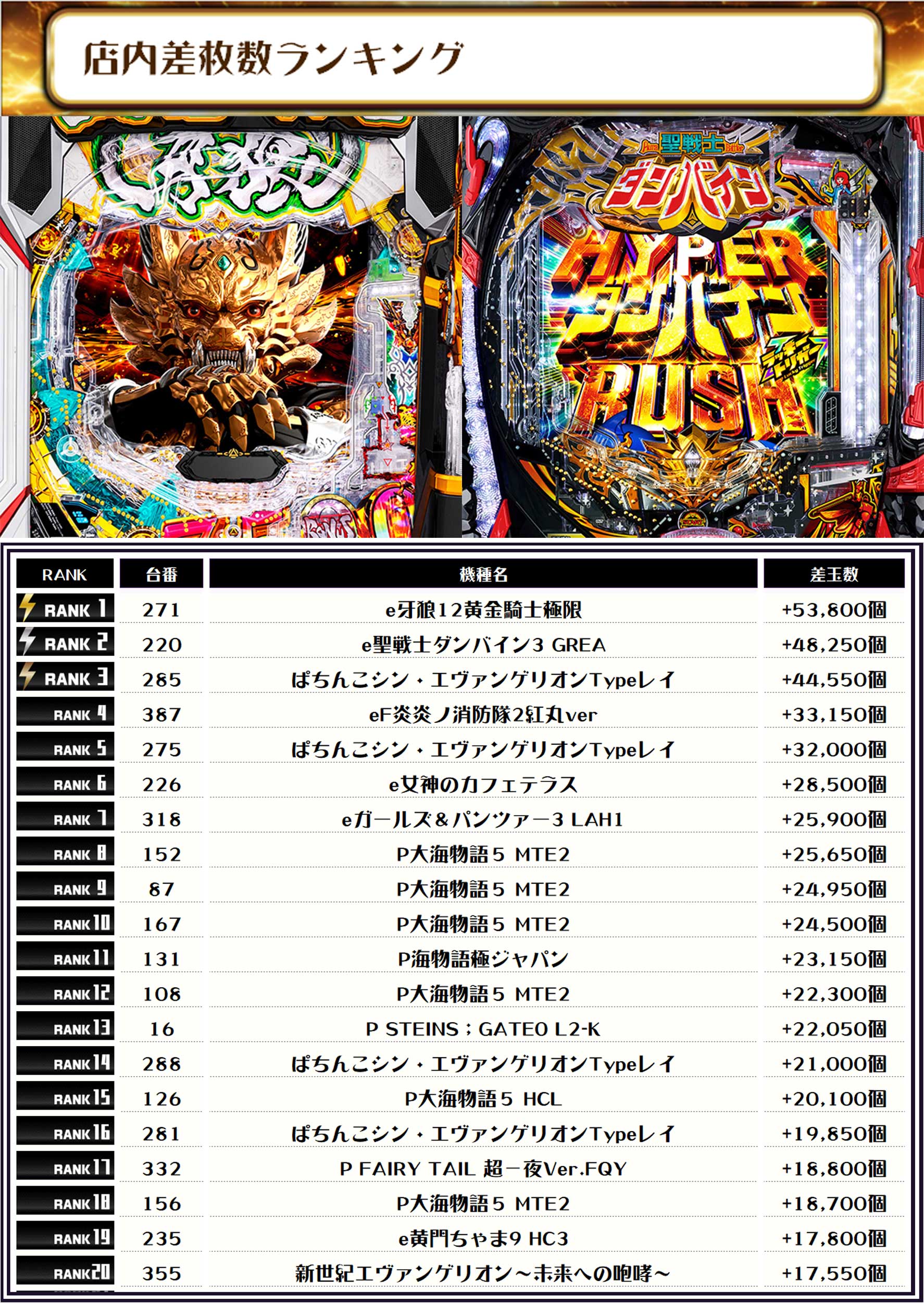 最後に、この日の【店内差玉数ランキング】をどうぞ✨