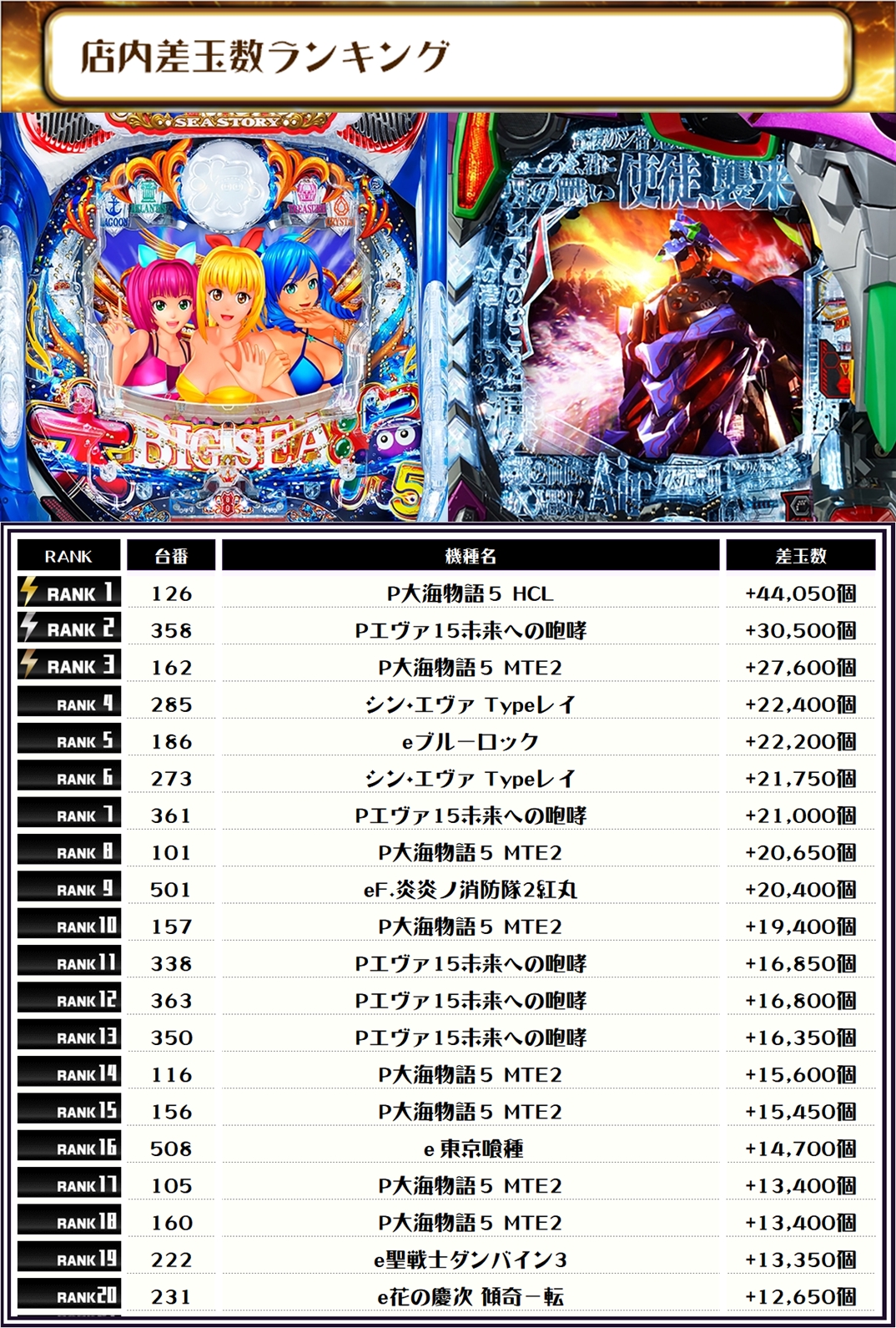 最後に、この日の【店内差玉数ランキング】をどうぞ✨
