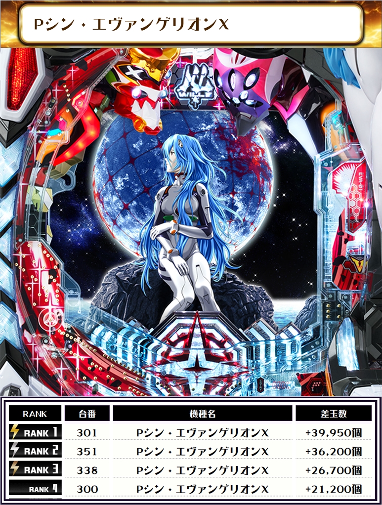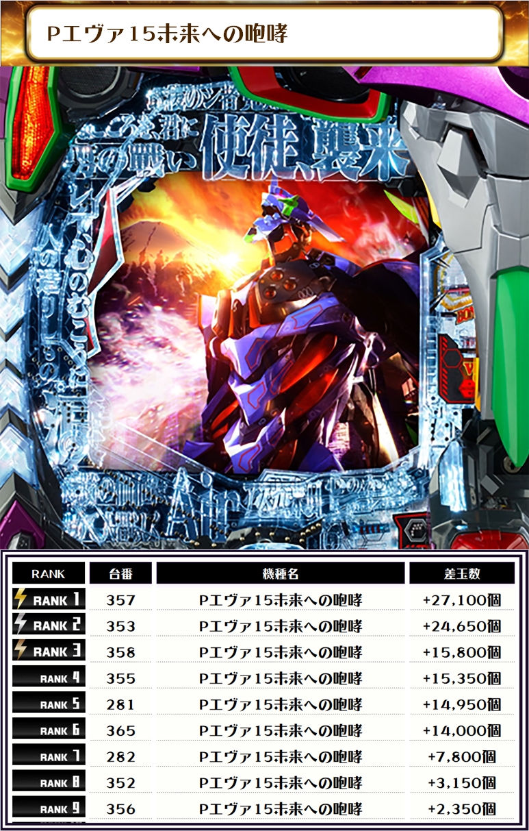 毎回注目のエヴァシリーズ!! 今回は新台の、eエヴァ17はじまりの記憶は6台、Pシン・エヴァンゲリオンは3台、Pエヴァ15未来への咆哮は2台ランクイン🔥🔥🔥 今回もエヴァシリーズが大活躍する素晴らしい結果となりました👑👑👑