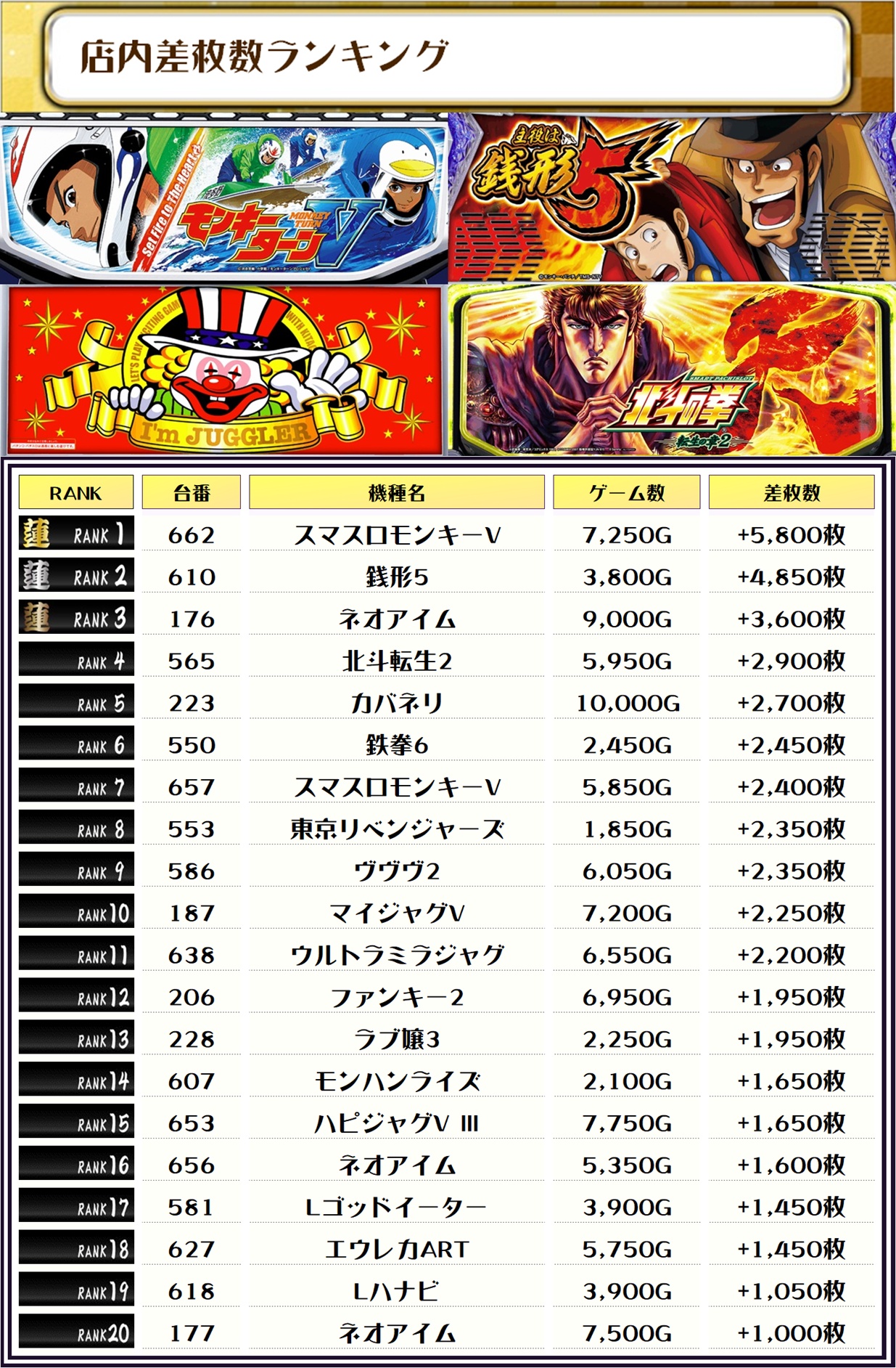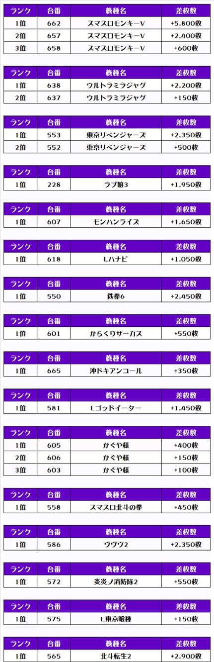 それでは早速、機種別差枚ランキングをチェックしましょう❗️