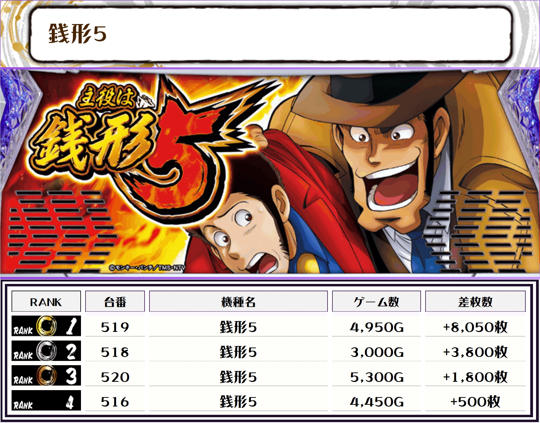 2位には【モンハンライズ・600番台】の+11,700枚、そして3位には【銭形5・519番台】の+8,050枚がランクインしましたっ👾👾👾