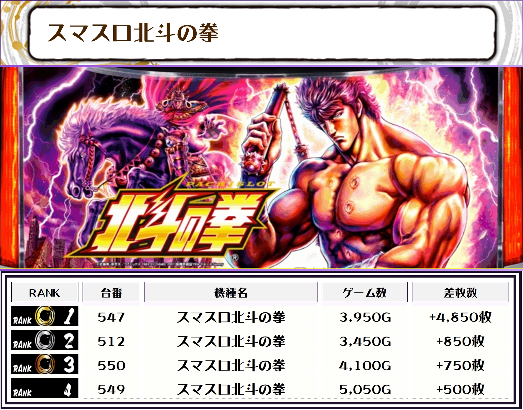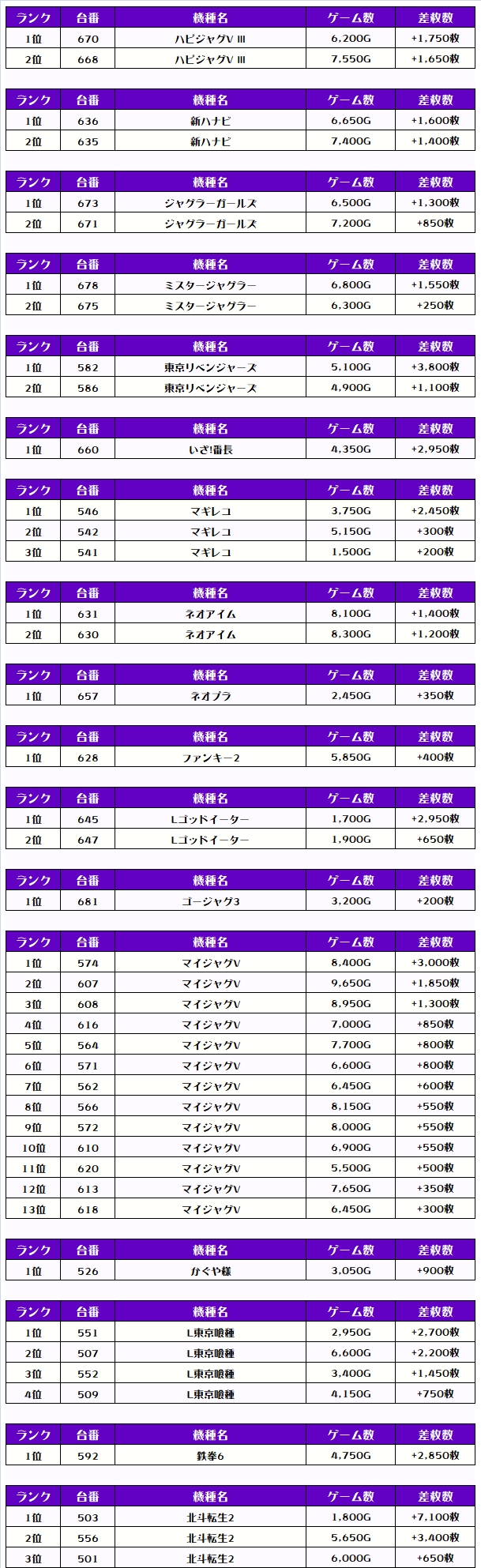 それでは、この日の機種別ランキングを見ていきましょう‼️