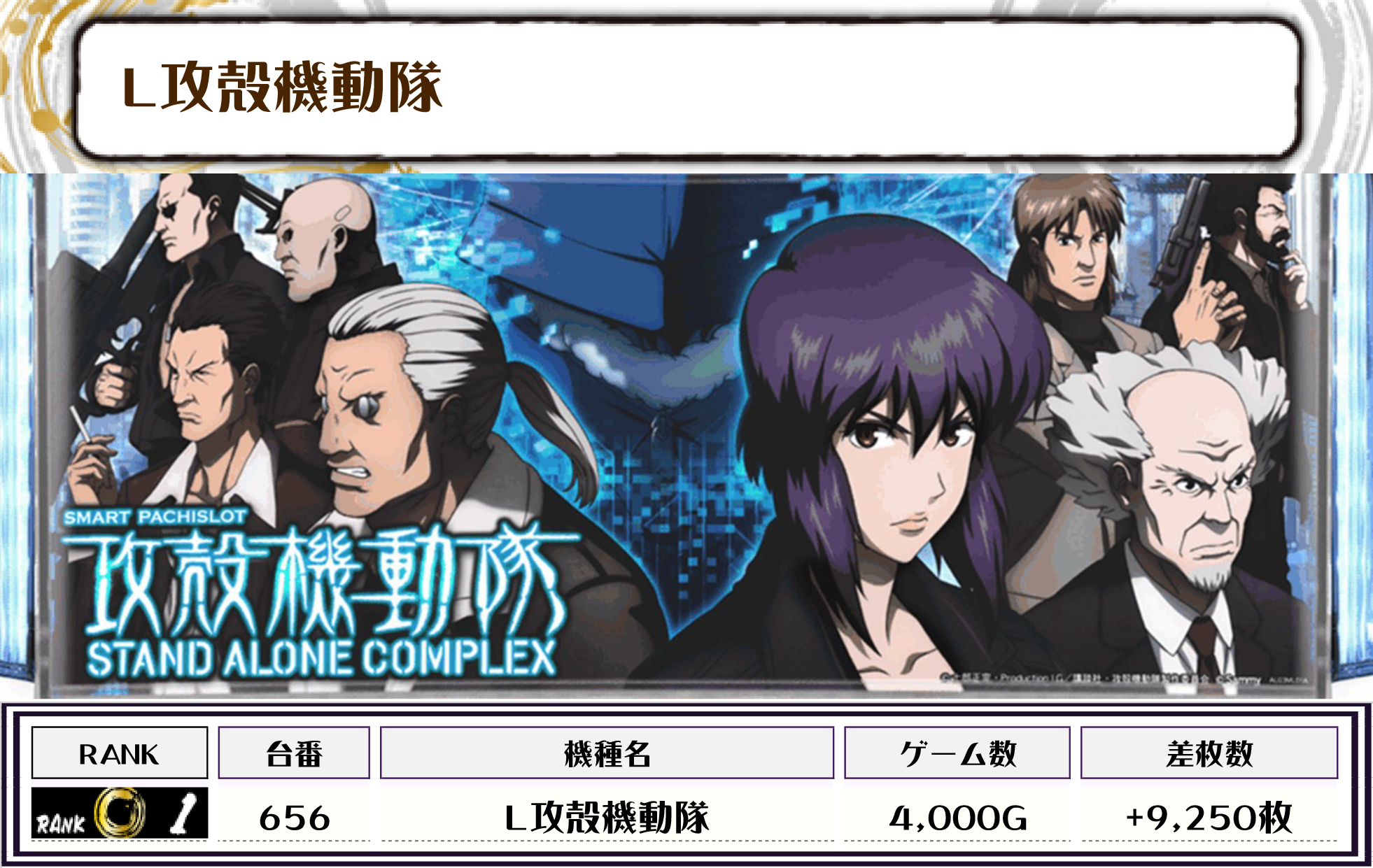 2位には【L攻殻機動隊・656番台】の+9,250枚、そして3位は【鉄拳6・596番台】の+8,050枚がランクインしましたっ👾👾👾