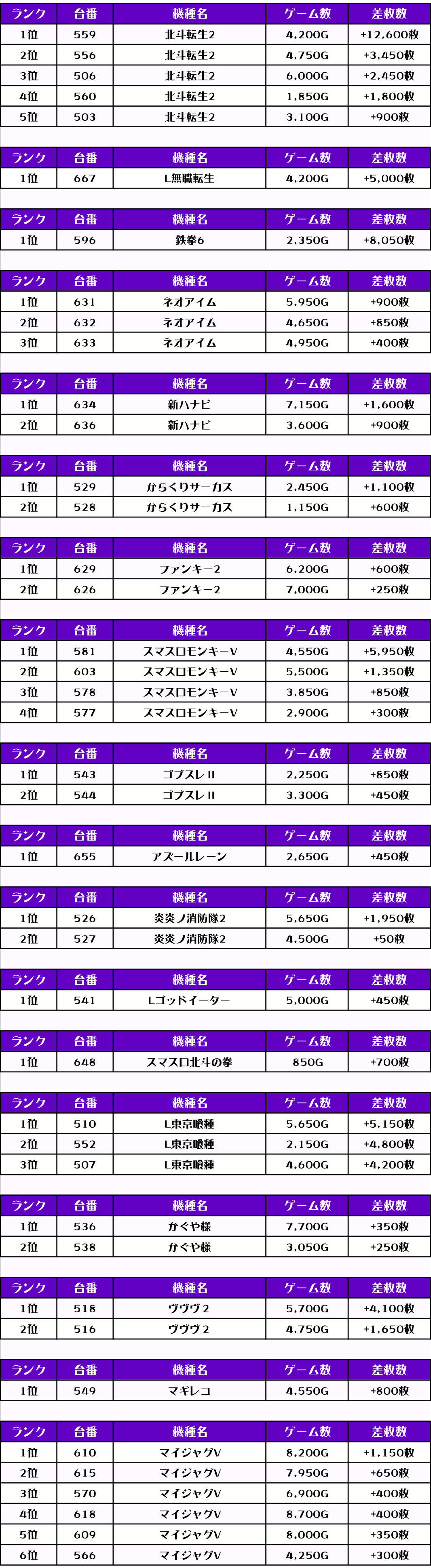 それでは、この日の機種別ランキングを見ていきましょう‼️