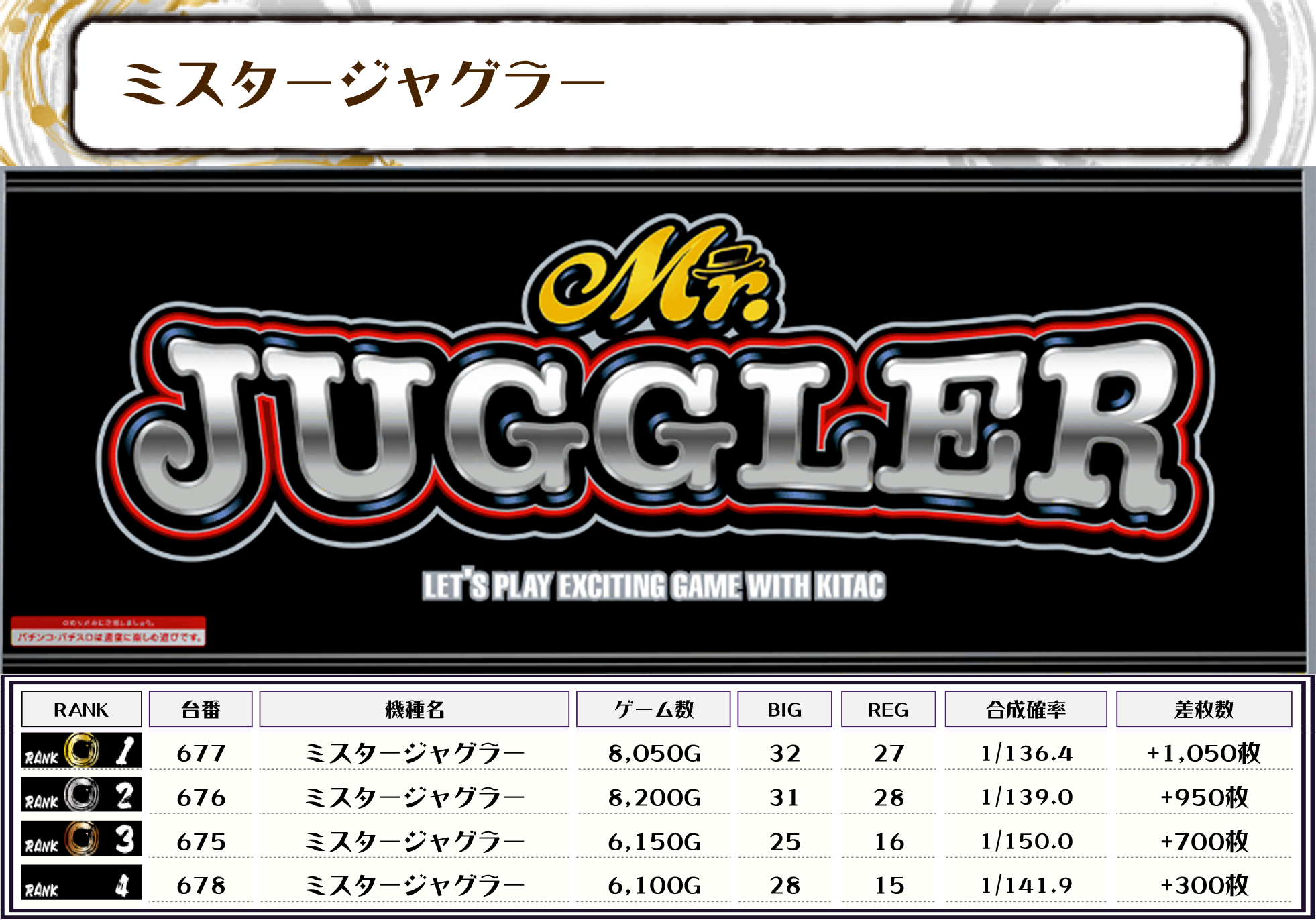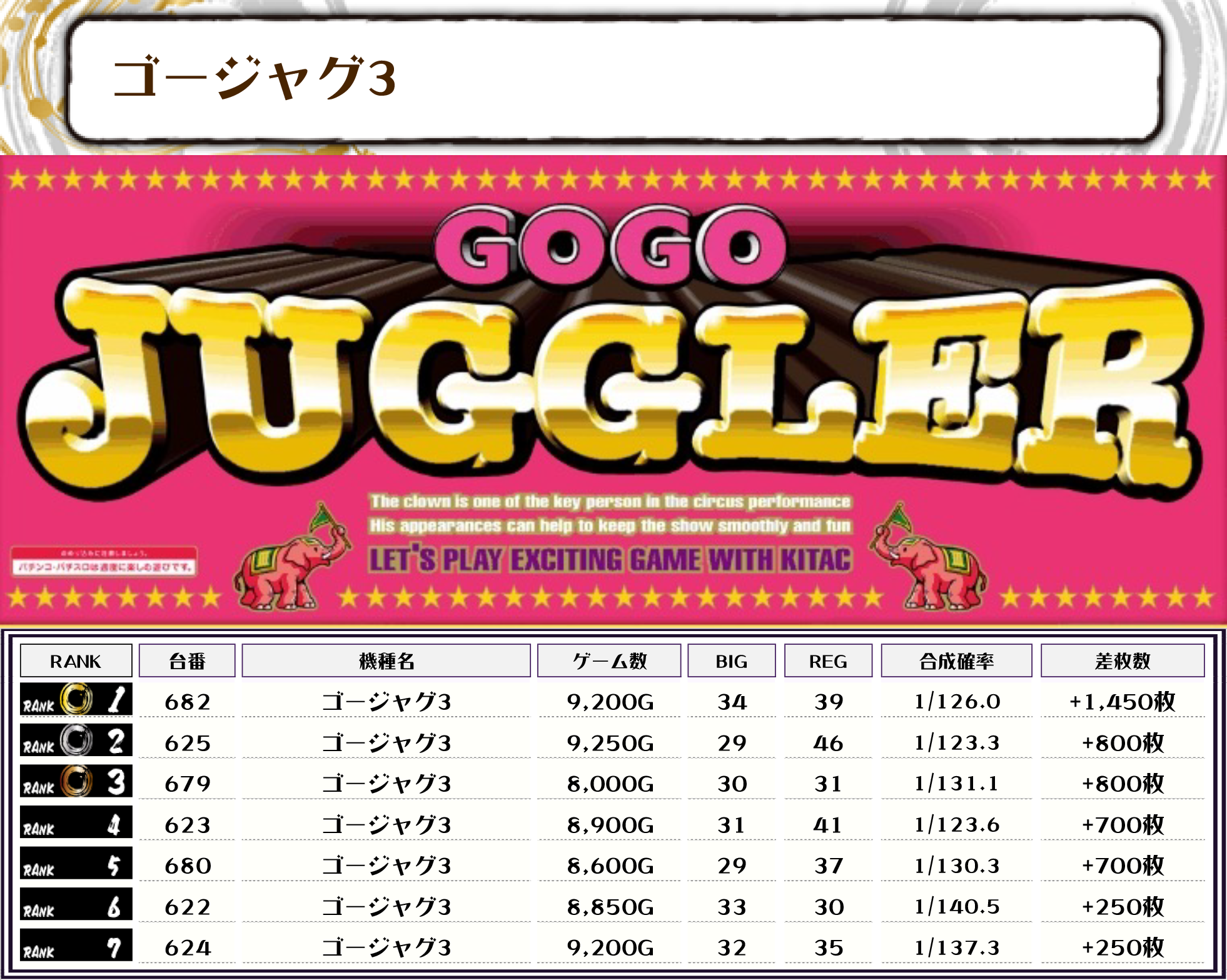 また、ピックアップした機種は稼働が良好なものや優秀台が多く出現していたものになります📝