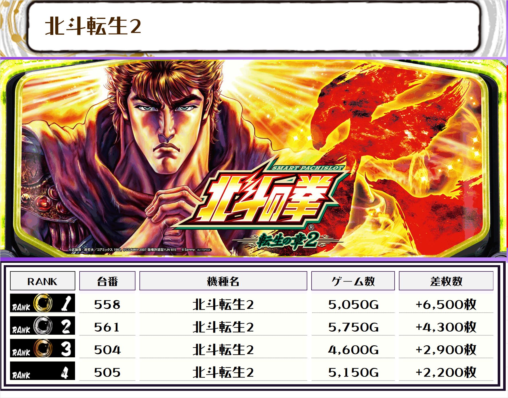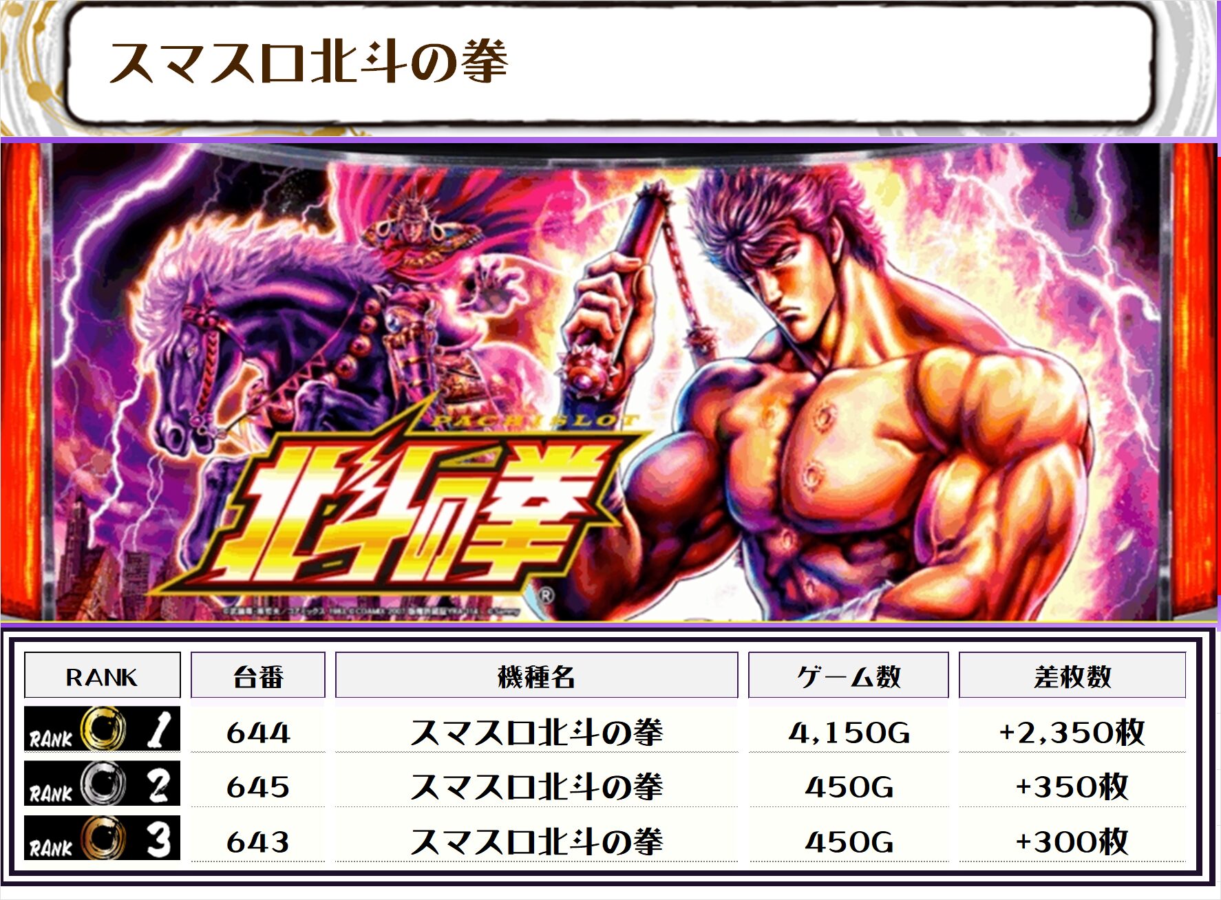 2位には【北斗転生2・558 番台】の+6,500枚、そして3位は【L東京喰種・508番台】の+6,150枚がランクインしましたっ👾👾👾