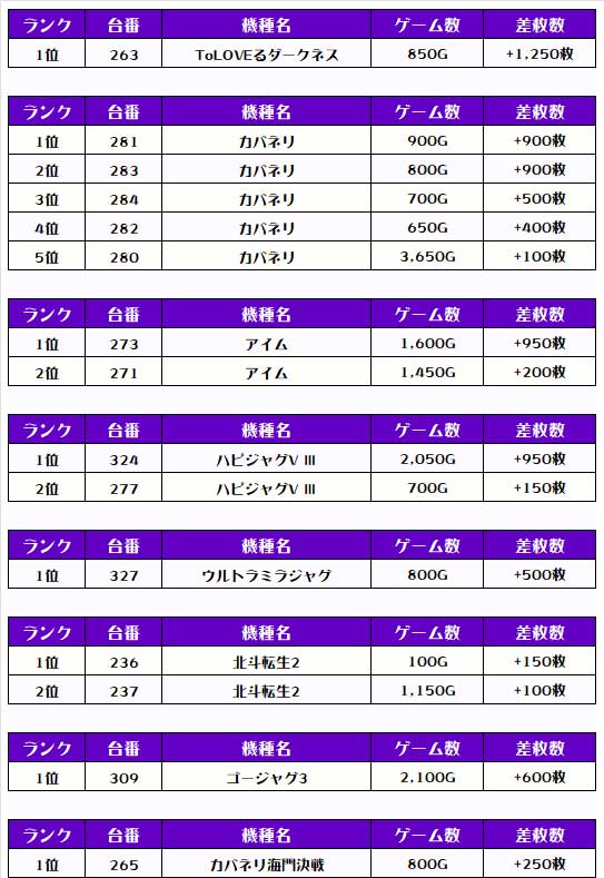 今回は稼働が高く、優秀台が多かったと思われる機種をピックアップしてみたぞ🔍