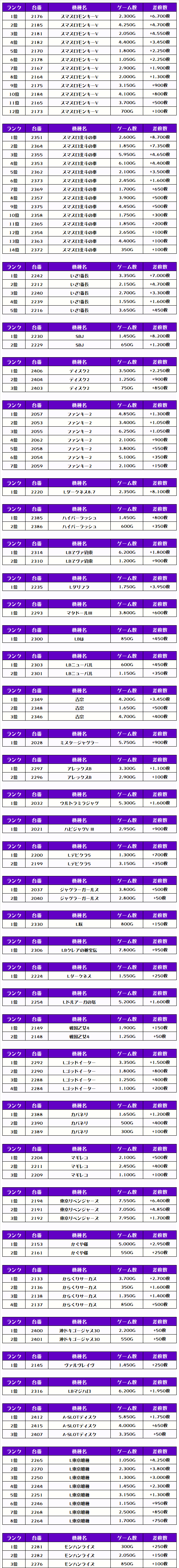 次に、機種別差枚ランキングをチェック❗️