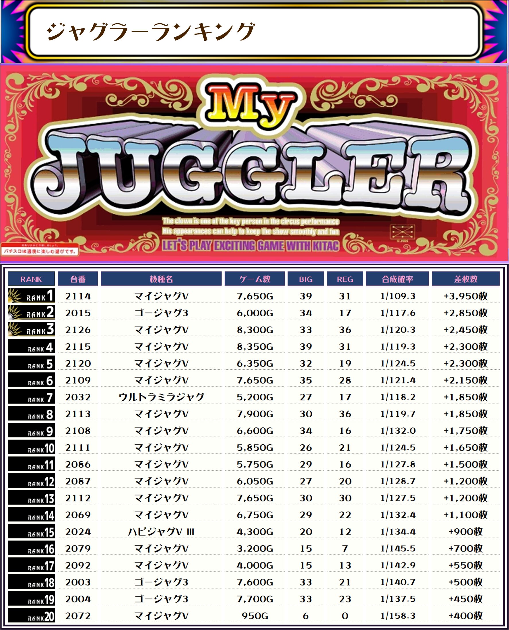 ジャグラー系機種のランキングをご覧になっていただくとお分かりの通り、マイジャグの占有率がかなり高いので、ここに力が入っていたことが伺えますね🔥
