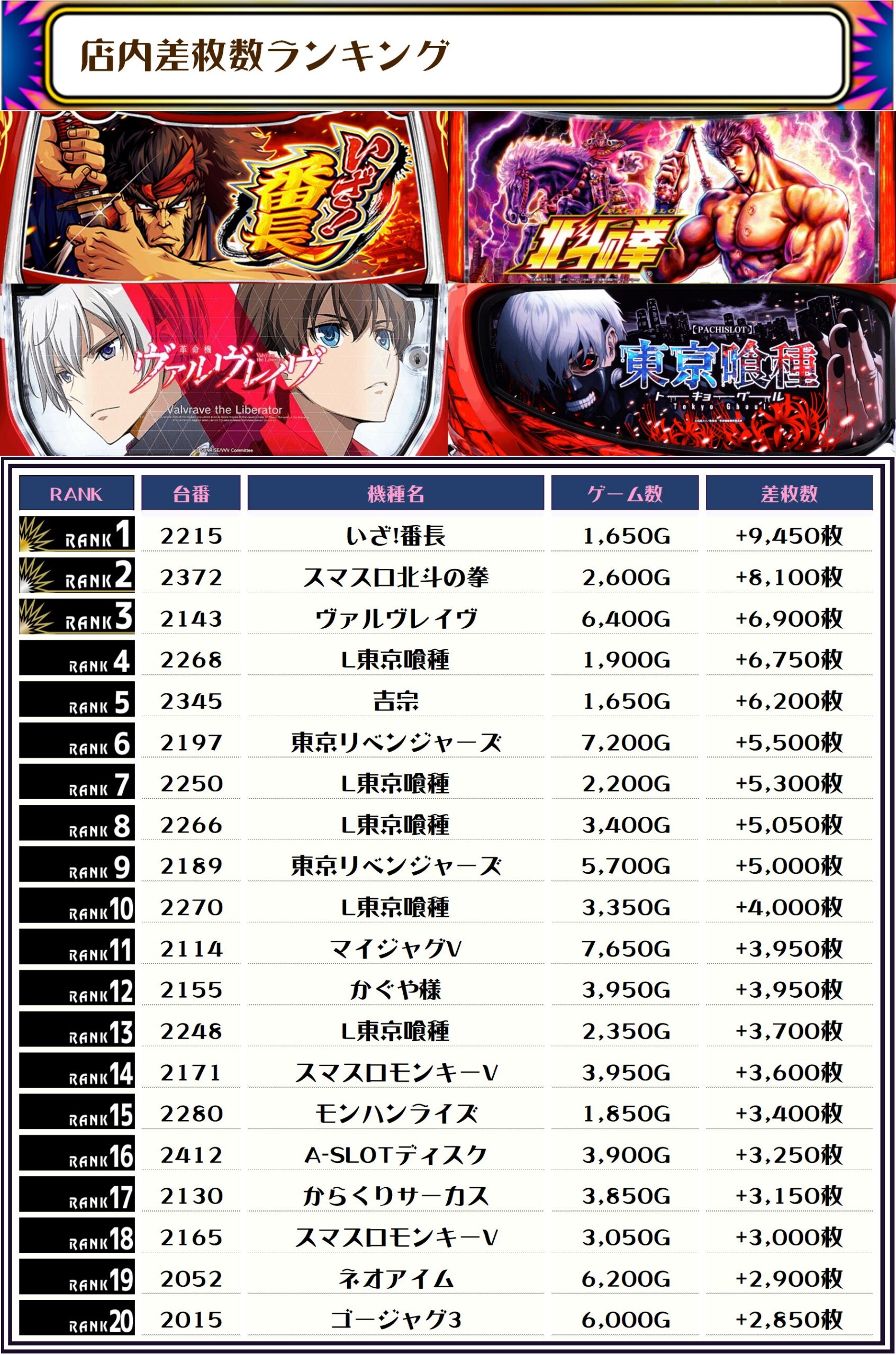 最後に、この日の店内差枚ランキングをどうぞっ❗️