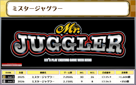 今回のピックアップは優秀台が多数あったと思われる機種です👍