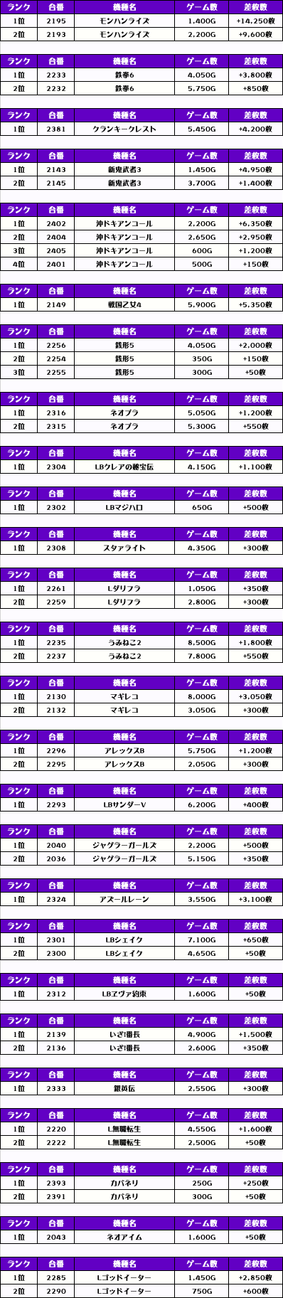 次に、機種別差枚ランキングをチェック❗️