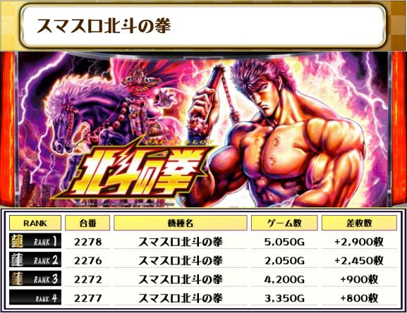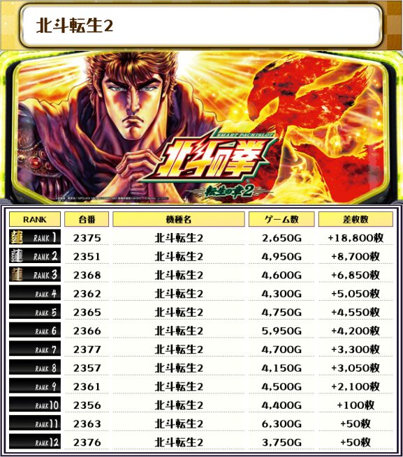 この日、全体の差枚トップに輝いたのは【北斗転生2・2375